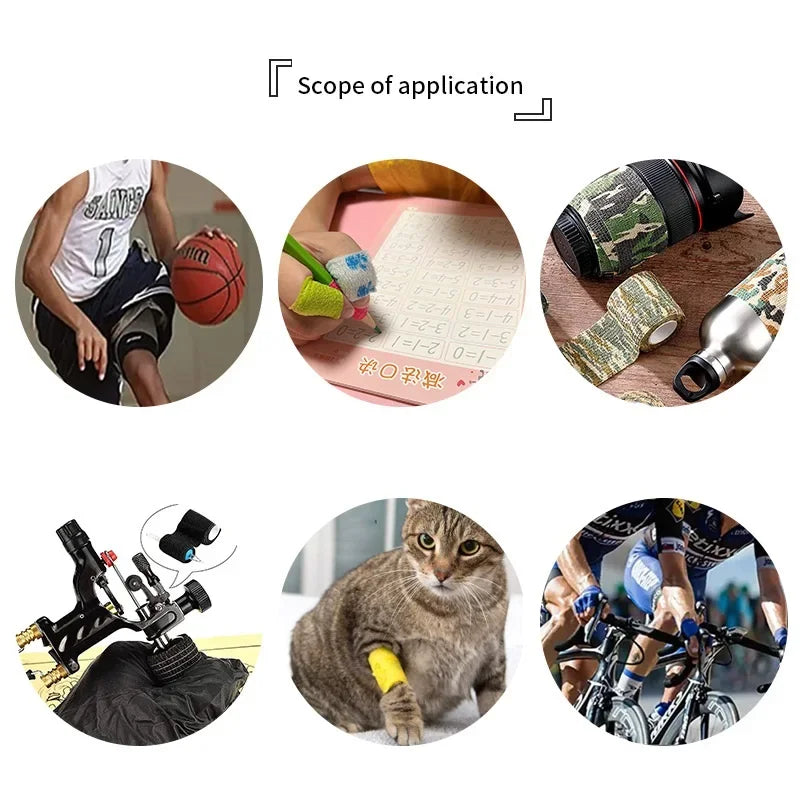 10 Rolls Athletic Wrap Tape Self Adhesive Elastic Bandage Elastoplast Sports Protector Knee Finger Shoulder Tattoo Accessories