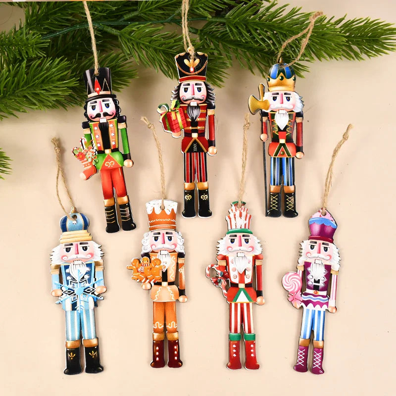 12Pcs Nutcracker Soldier Wooden Pendant Xmas Tree Hanging Ornament 2024 Christmas Decoration for Home Navidad 2025 New Year Gift