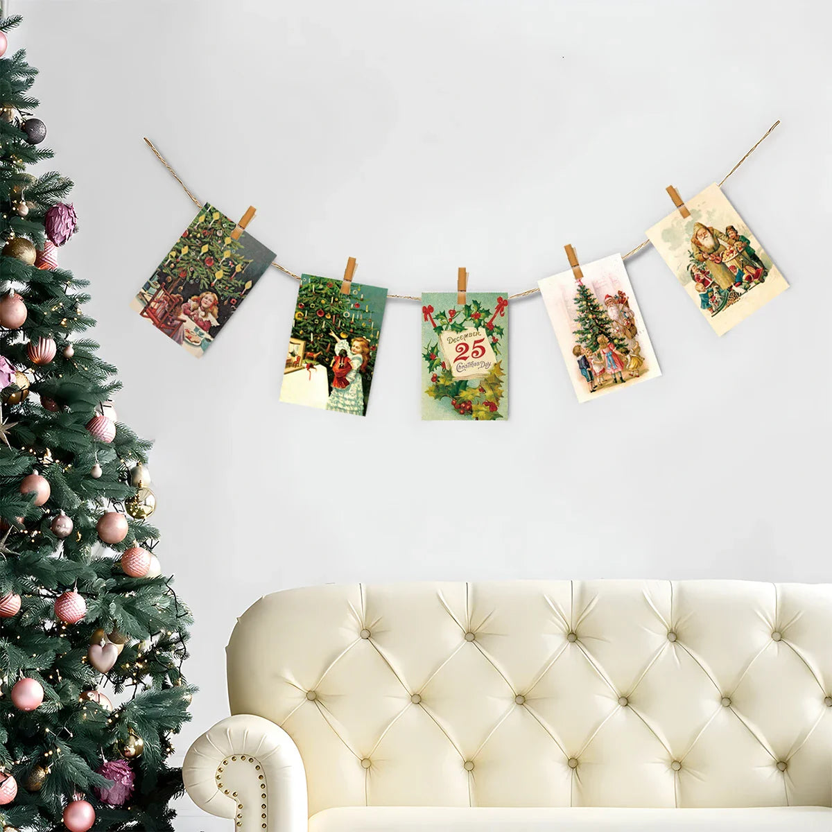 12pcs Vintage Christmas Greeting Cards Set Santa,Elk,Xmas Tree Postcard Set,Note Cards Small Card,Perfect Vintage Christmas Gift