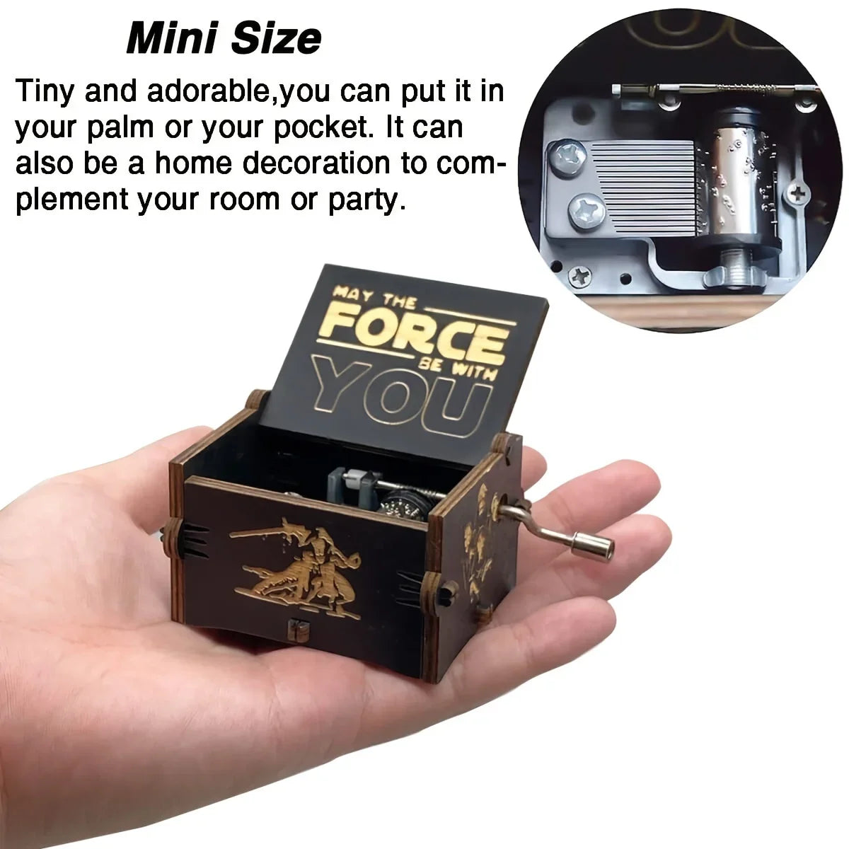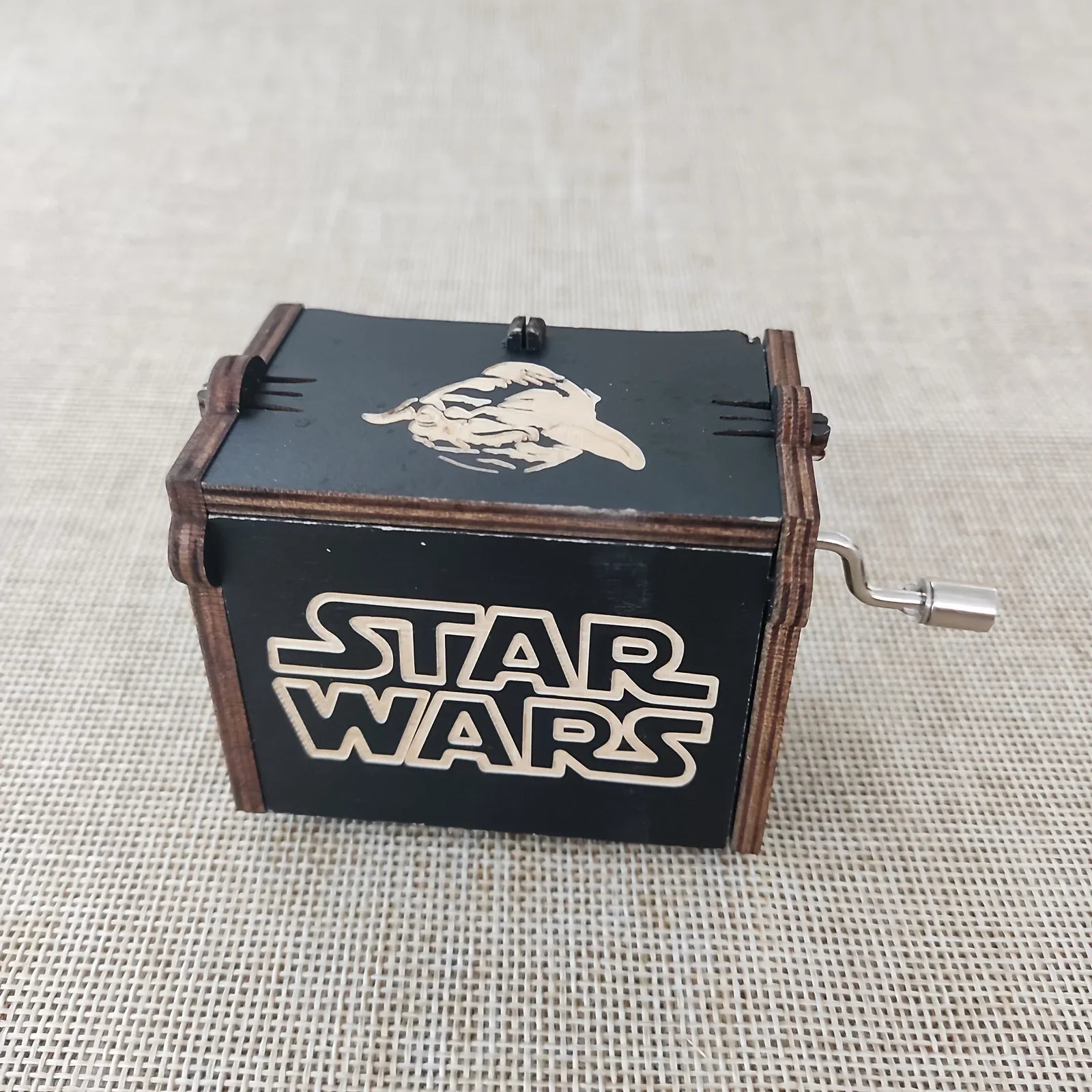 1pc Music Box Black Wooden Antique Carved Hand Cranked Classic Theme Music for Birthday Christmas Gifts Family Decoration