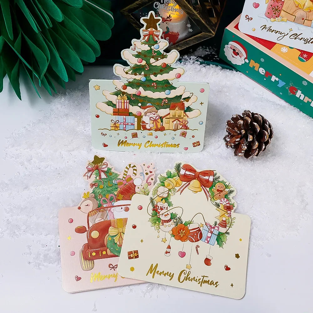 20/10/5/1Pcs Christmas Cards Greeting Invitations Foldable Bronzing Gifts Letter Home Xmas Party Envelope Decoration Accessories
