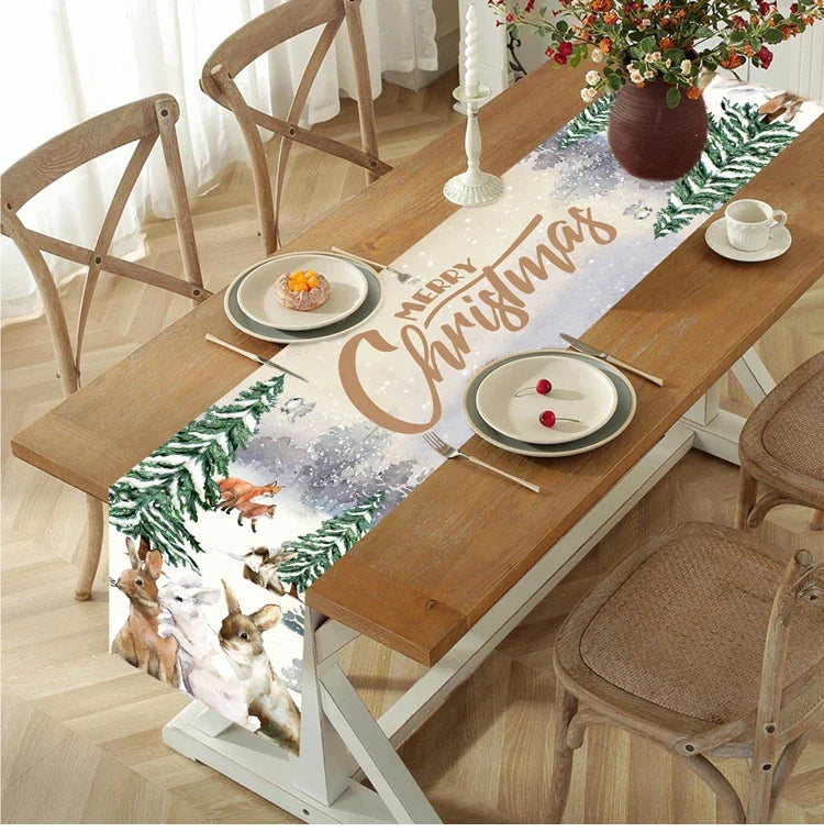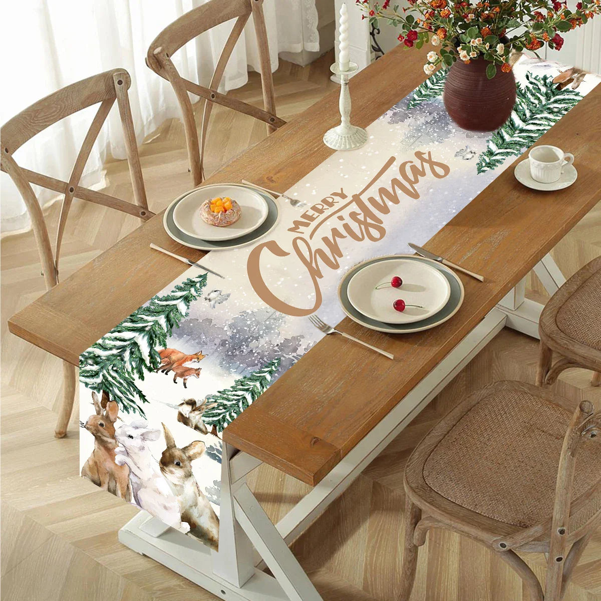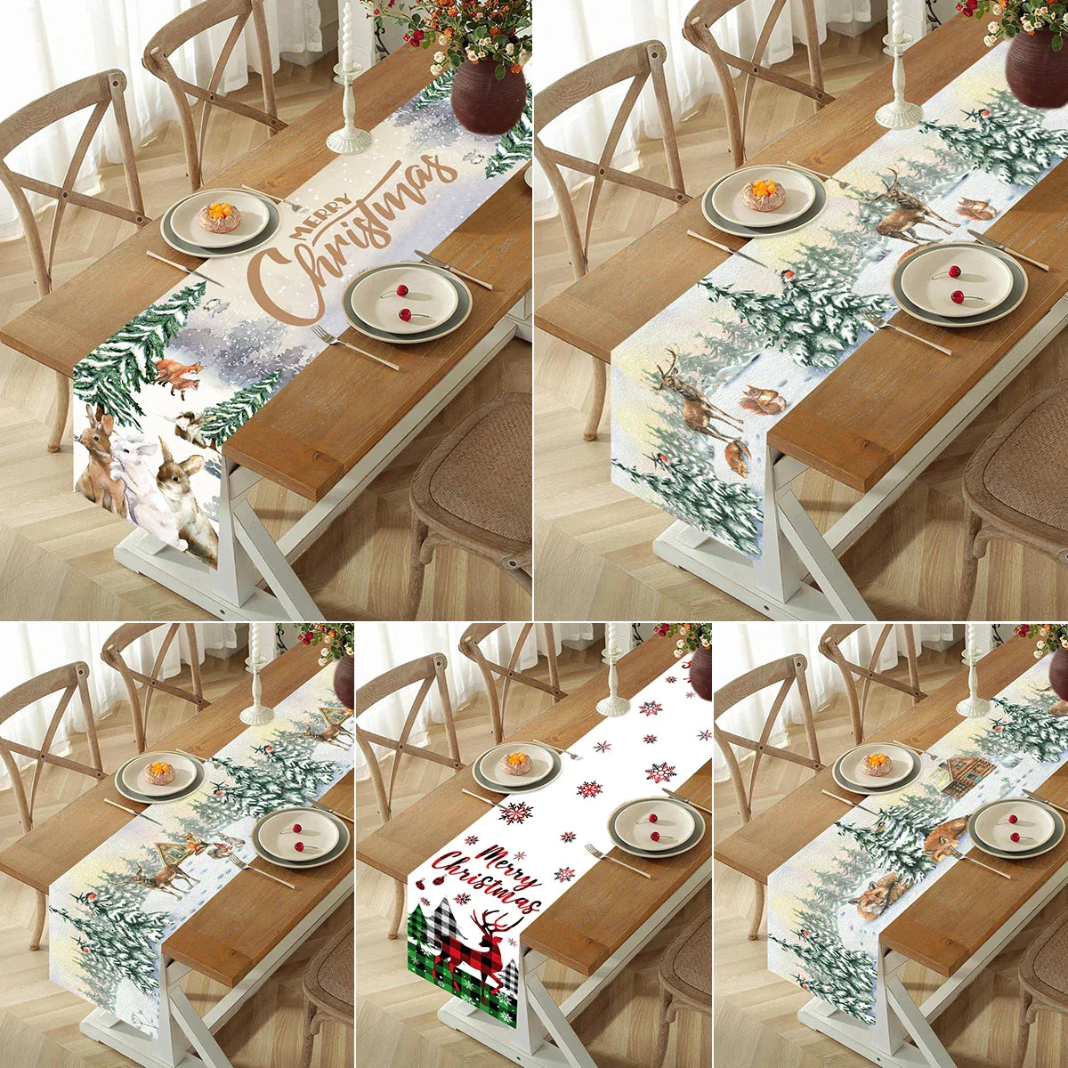 2024 Christmas Table Runners Merry Christmas Decoration for Home Tablecloth Table Cover Xmas Gifts Navidad Noel New Year 2025