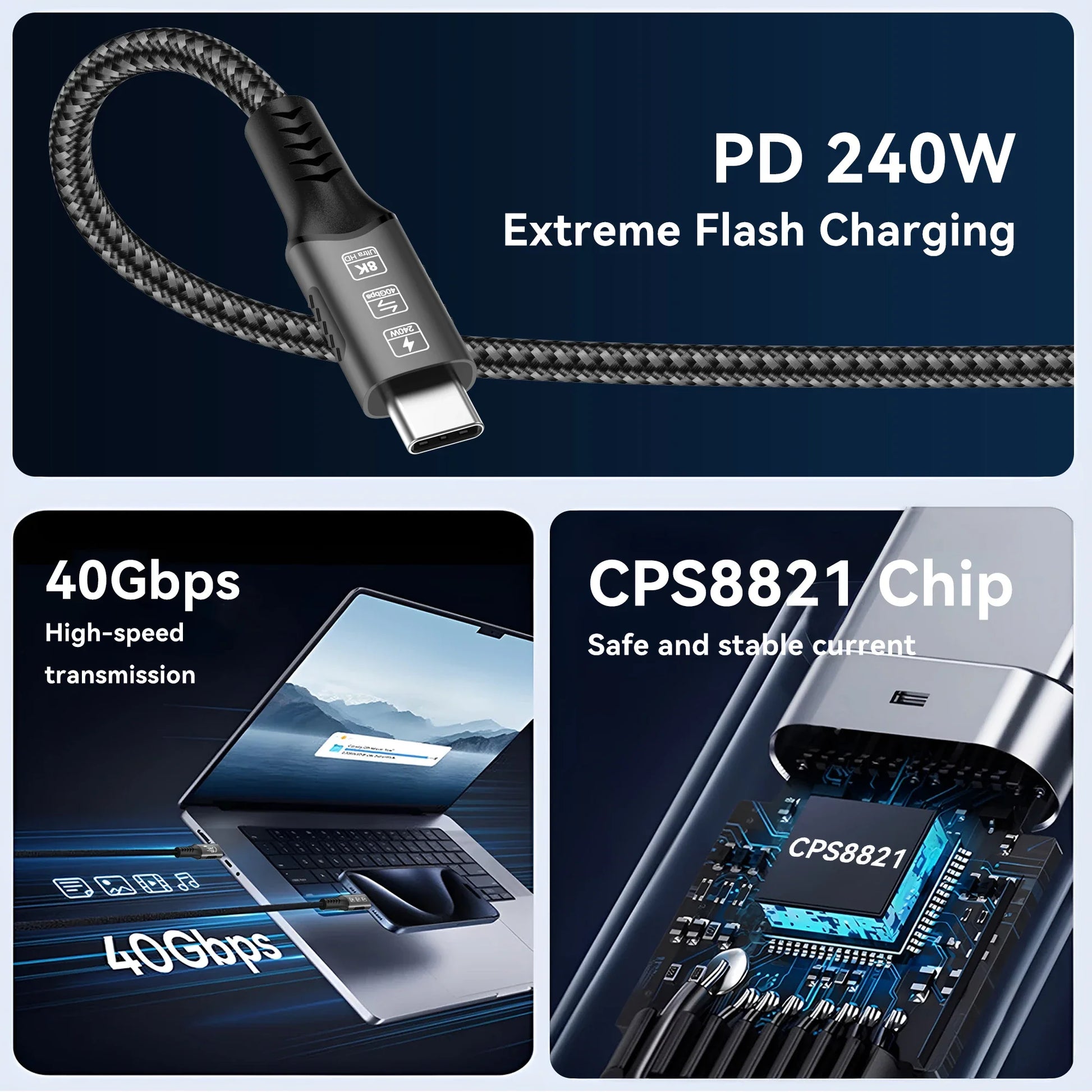 8K USB4 Cable 40Gbps 240W PD3.1 QC4.0 For Thunderbolt 4 Type C Fast Charging Cable Thunderbolt3 USB C to C Data Transfer Cable