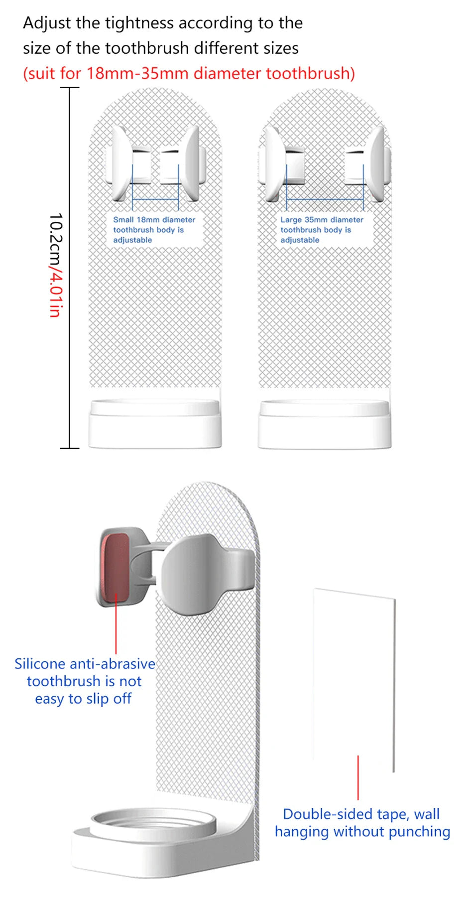 Adjustable Toothbrush Holder Electric Toothbrush Base Silicone Non-slip Wall Mount Brush Body Rack Adapt 99%