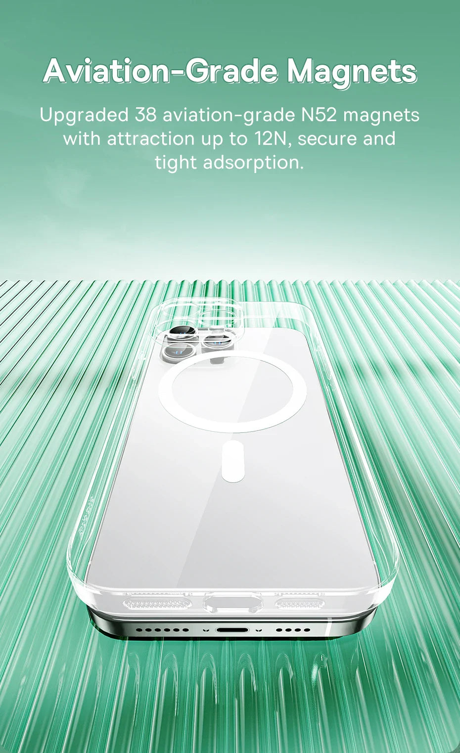 Upgraded 38 aviation-grade N52 magnets with attraction up to 12N, secure and tight adsorption.