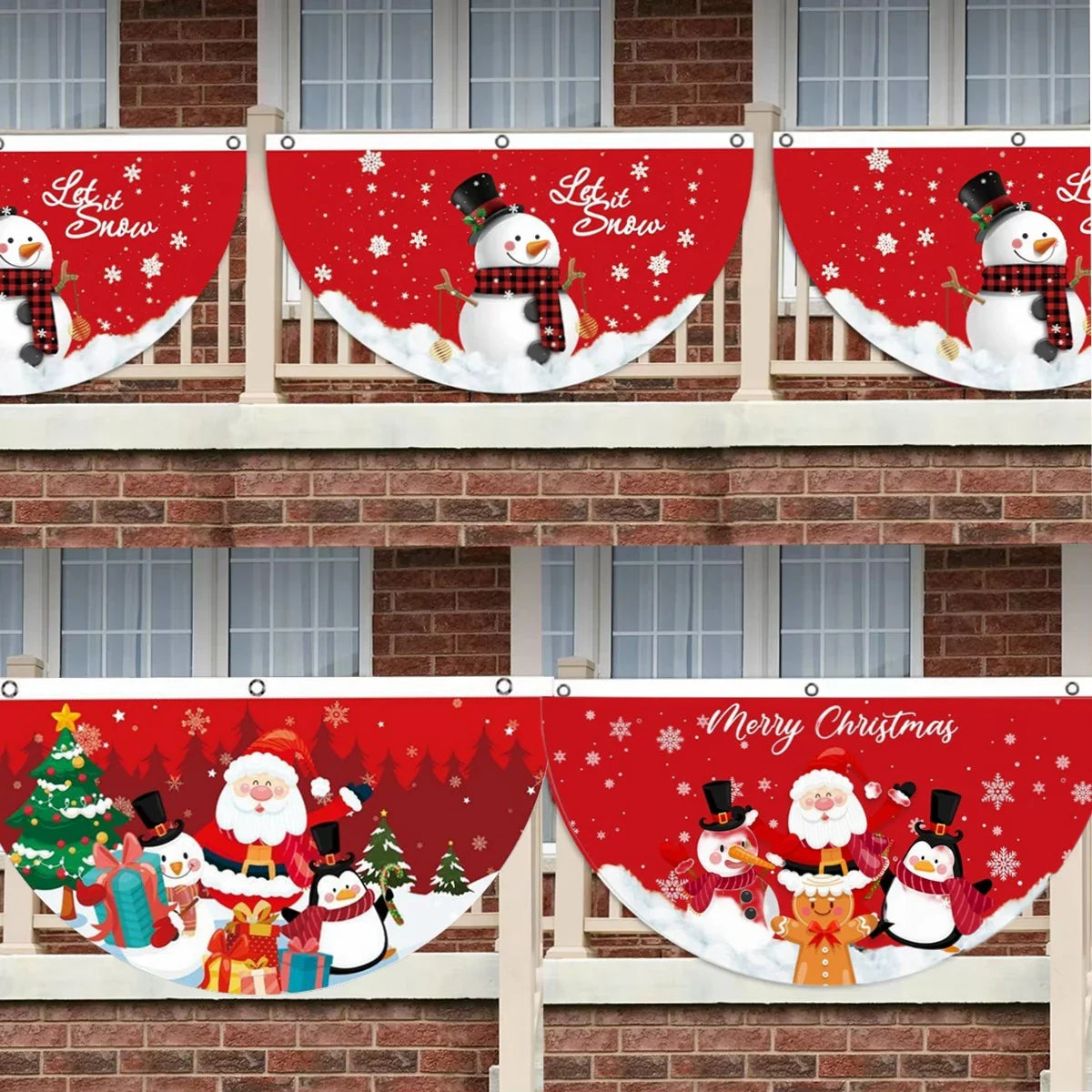 Christmas Fan-shaped Flag Banner Christmas Decoration for Home 2024 Christmas Ornament Xmas Navidad Noel Gift New Year 2025