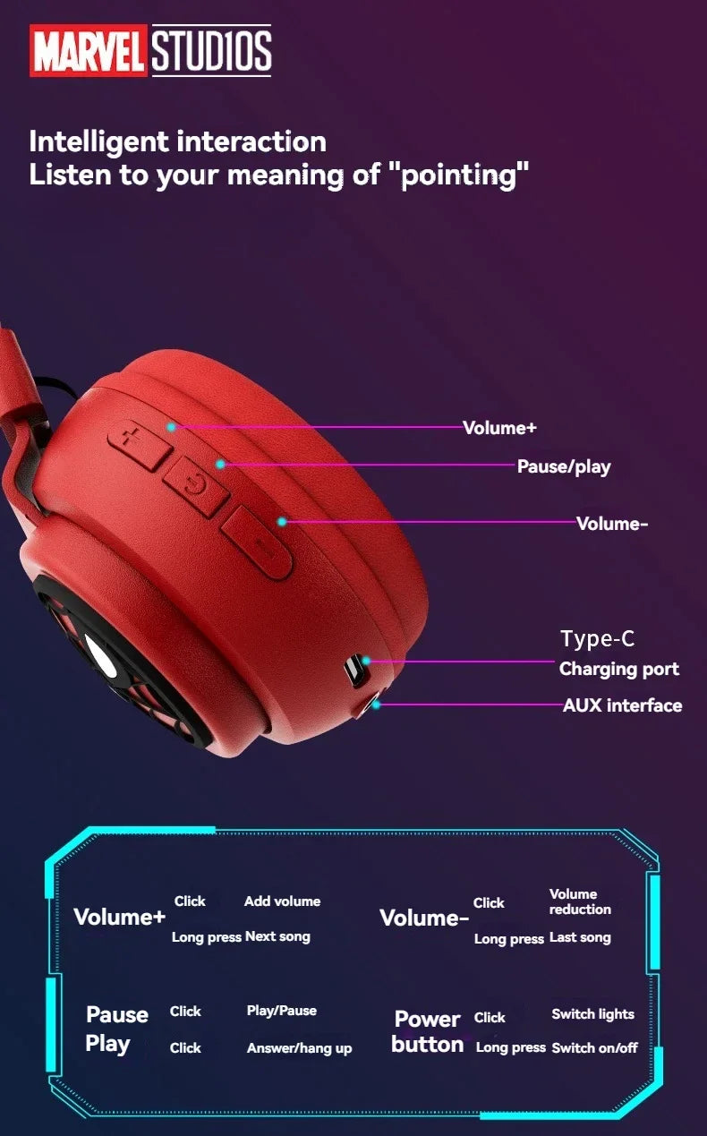 Disney Headphones Foldable HIFI Sound Bluetooth Headsets Spider-Man Series Wireless Earphones Bluetooth for Kids Anime Cartoon
