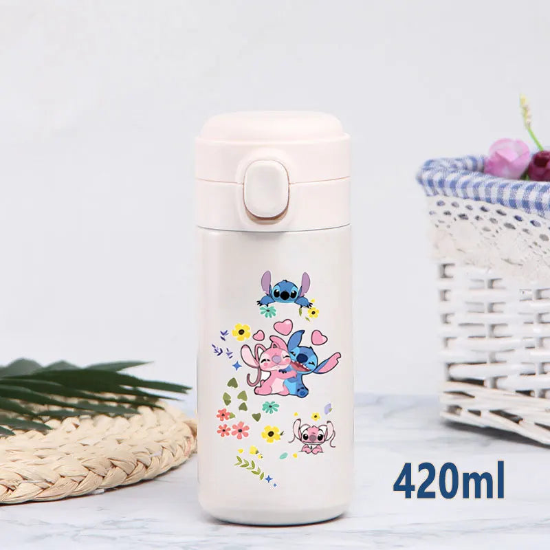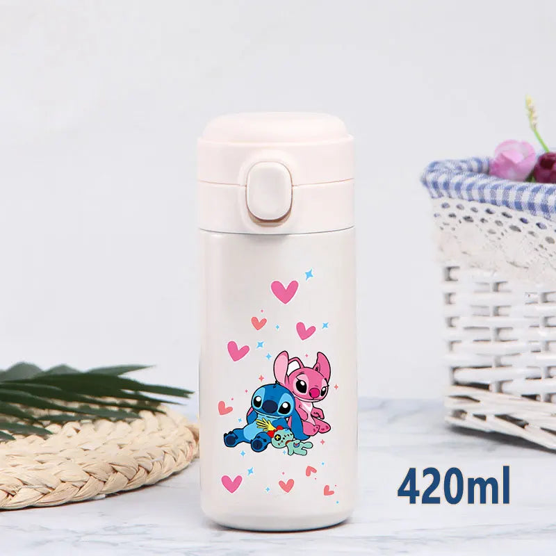 Disney Stitch 420ml Thermal Cup Sports Water Bottle Kids Portable Large Capacity Outdoor Vacuum Cup Stainless Steel Bottle