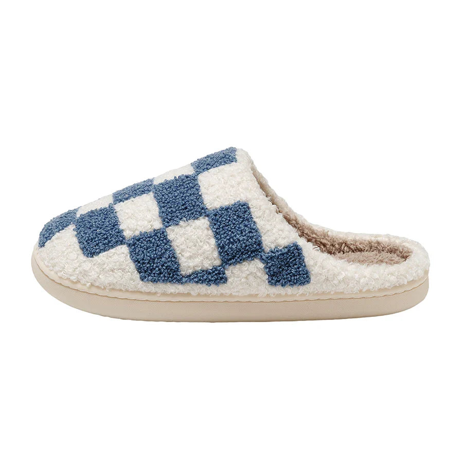 Fuzzy Women Men Slippers Fashion Checker Embroidery Houseshoes Cozy Fluffy House Retro Checkered Print Winter Home Shoes