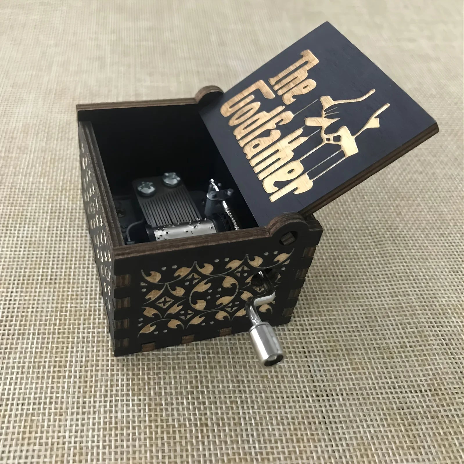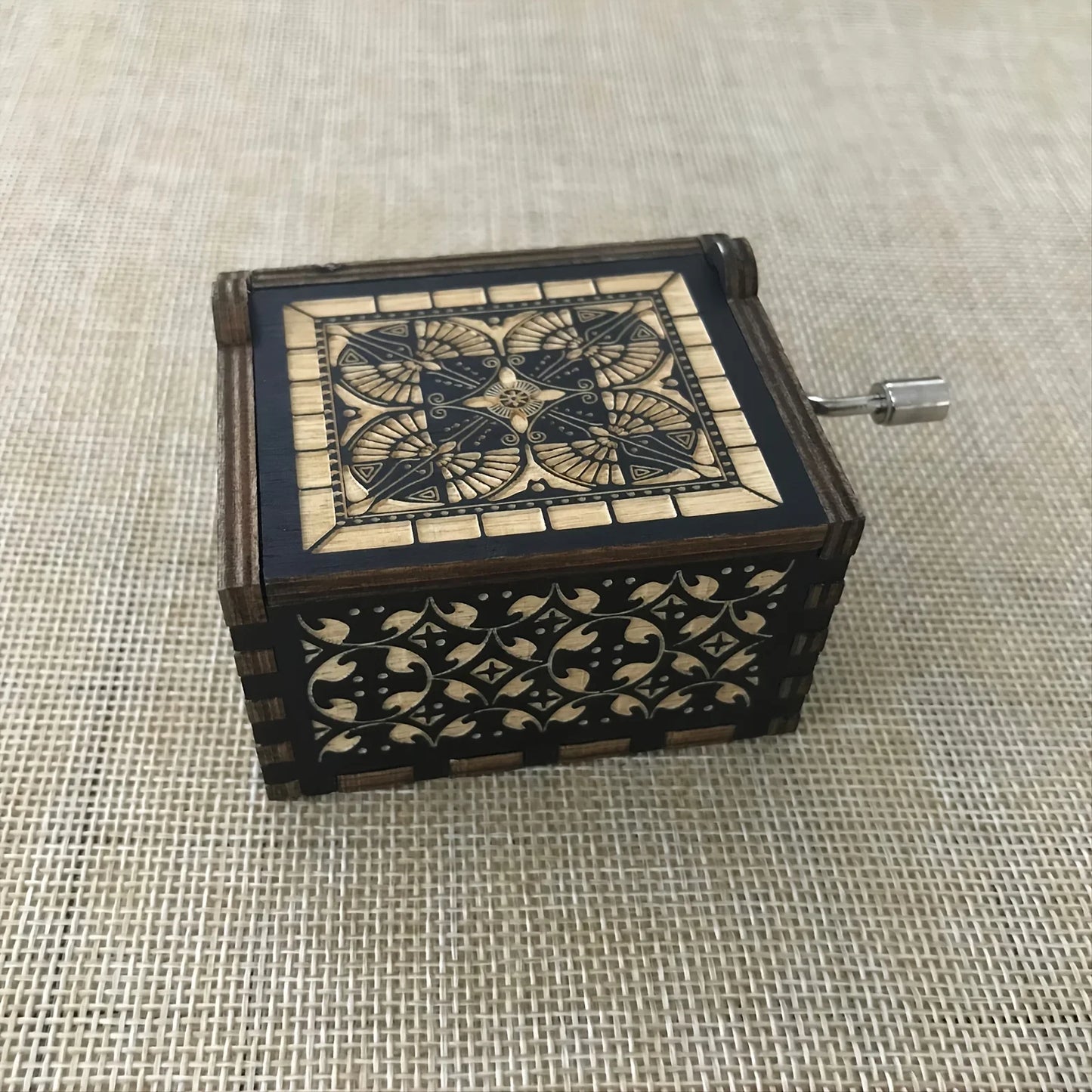 Hand Cranked Black Christmas Music Box Wooden Antique Carved Classic Theme Music for Birthday Party Gifts Family Decoration