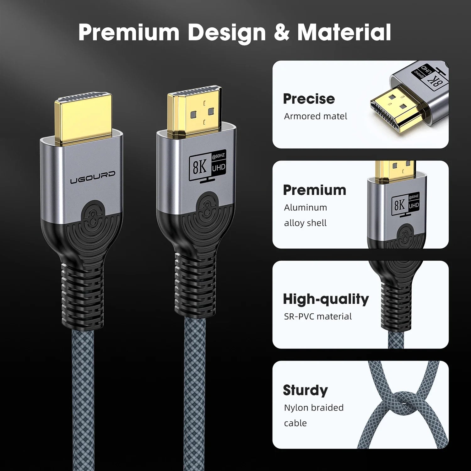 HDMI2.1 Cable Copper Wire Core Cable 8K@60Hz HDR 4K@240/160/144/120/60Hz UHD Ultra High Definition Video Cable 5m for Laptop TV