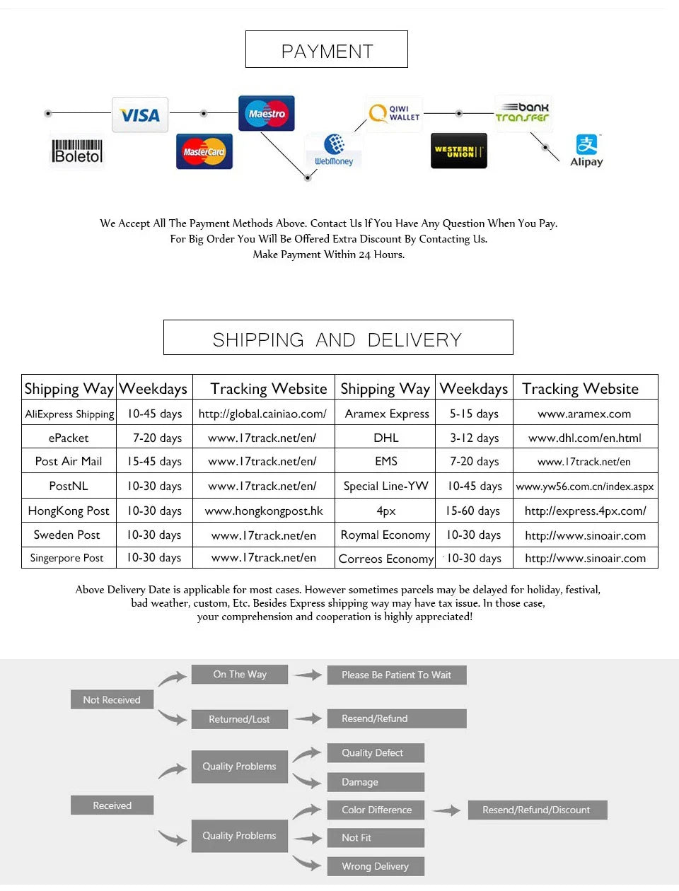 If your item arrive late or you have some problems, please do not open dispute, which is very important to us, we will try utmost to solve any problems you have and make you satisfied, many thanks!!