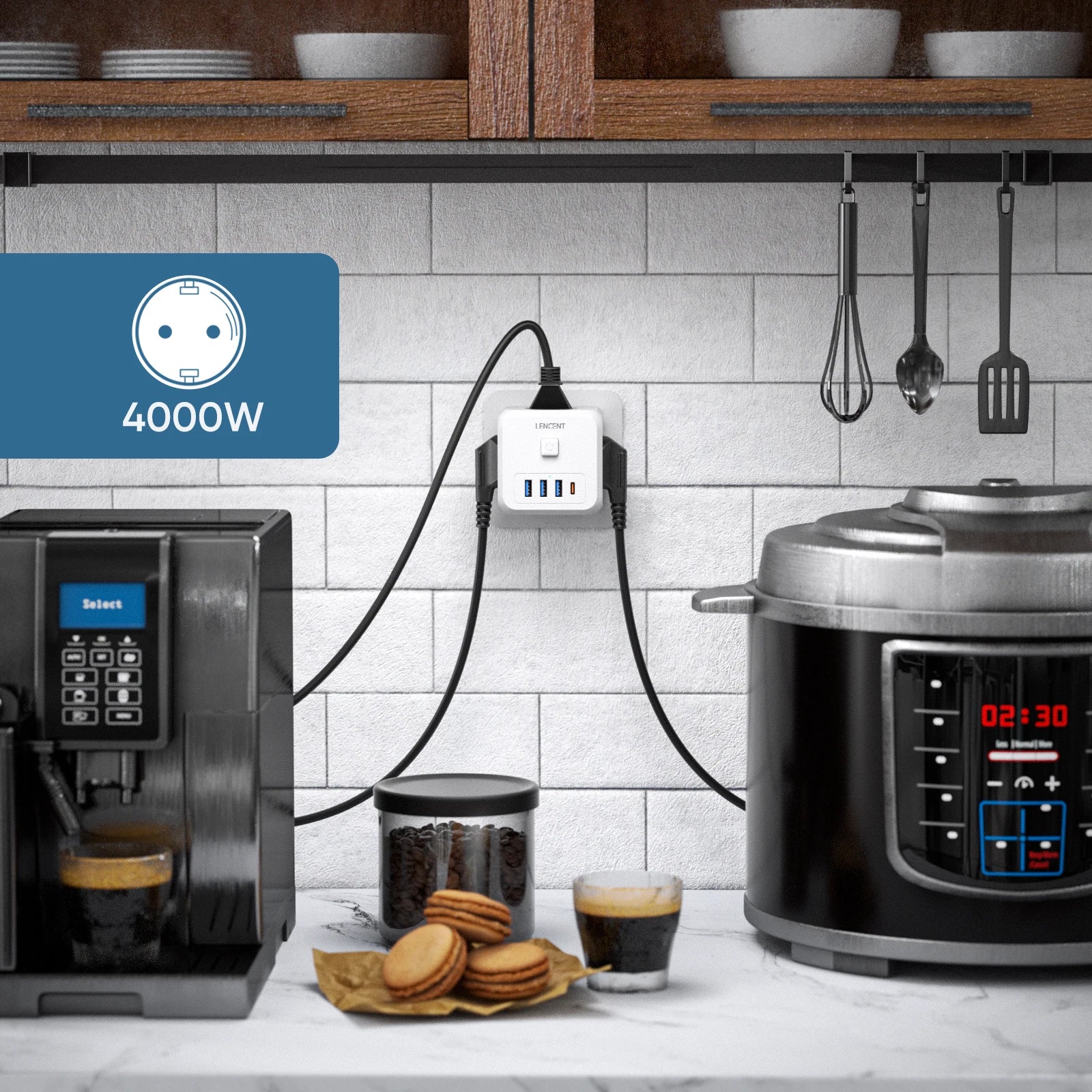 LENCENT Wall Socket Extender with 3 AC Outlets 3 USB Ports And1 Type C 7-in-1 EU Plug Charger On/Off Switch for Home
