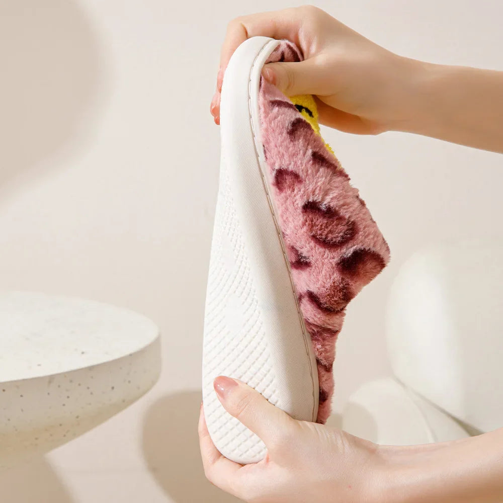 Leopard Fluffy Slippers for Home Smile Designer Platform Shoes Women 2024 Indoor Plush Sliders Warm Flats Chic Winter Footwear
