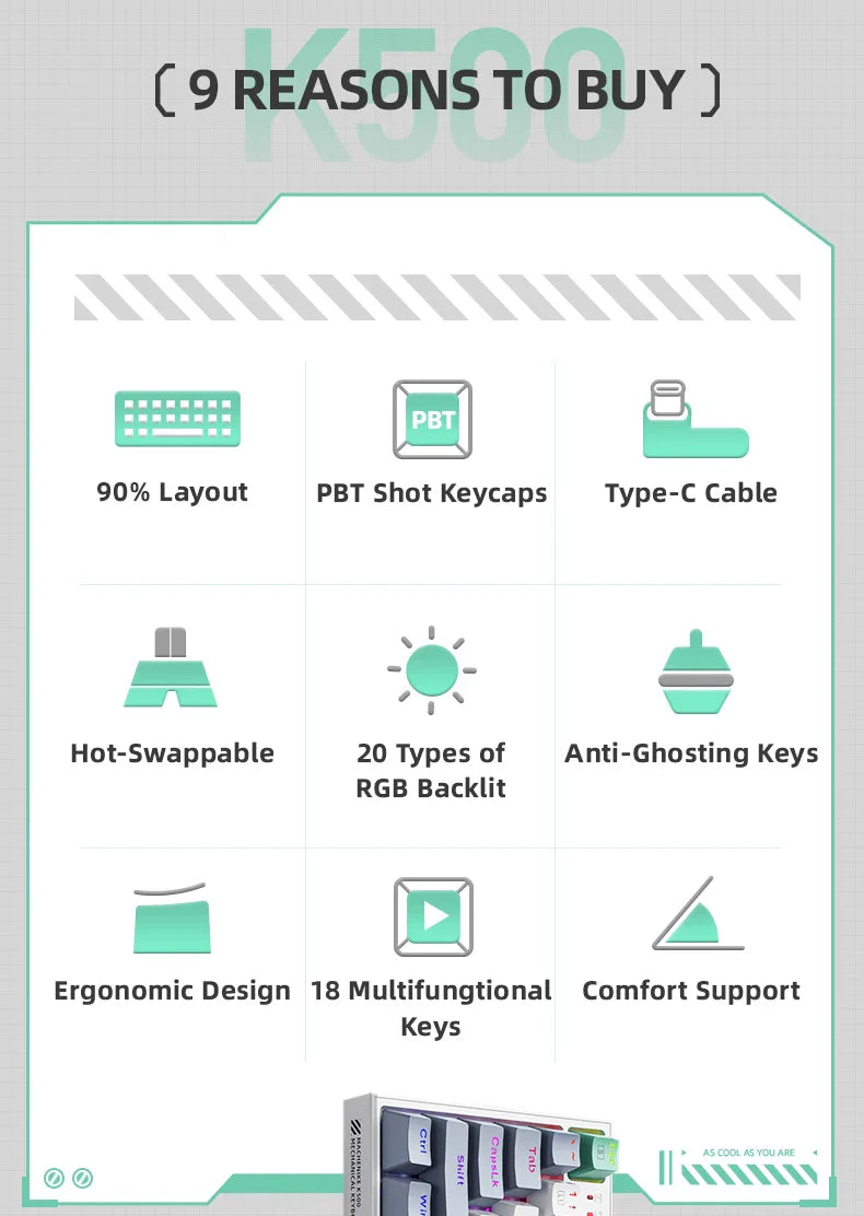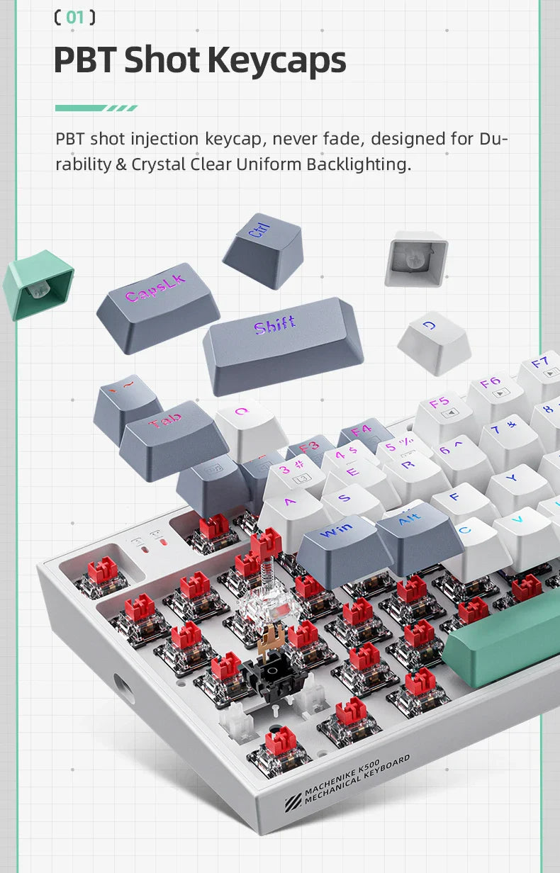 Machenike K500 Mechanical Keyboard Gaming Keyboard Wired Keyboard Hot Swappable 94 Keys RGB Light Mac Windows