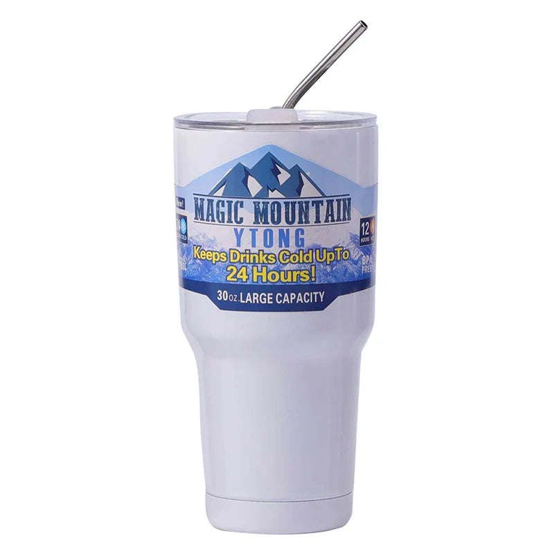 Magic Stainless Steel Freeze Thermos Cup with Straw Ice Coffee Drink Vacuum Insulated Bottle Car Travel Outdoor Mountain Cup
