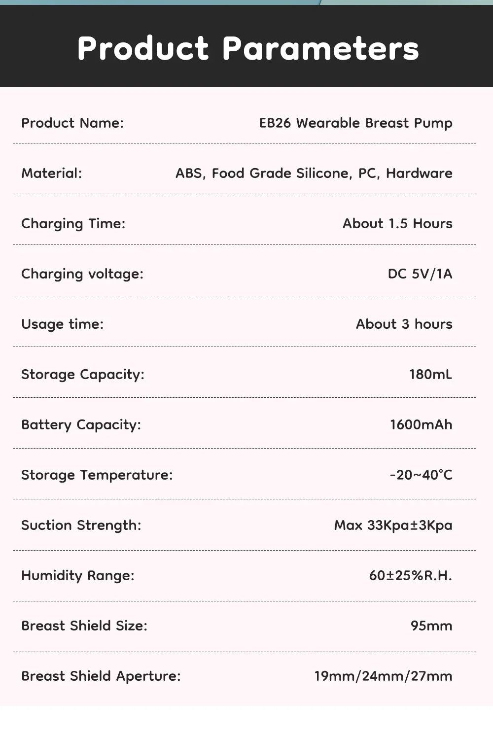 MAMIJOY Wearable Electric Breast Pumps 4 Modes 12 Levels Portable Hands Free Breast Pump Silent Comfort With 19/24mm Flange EB26
