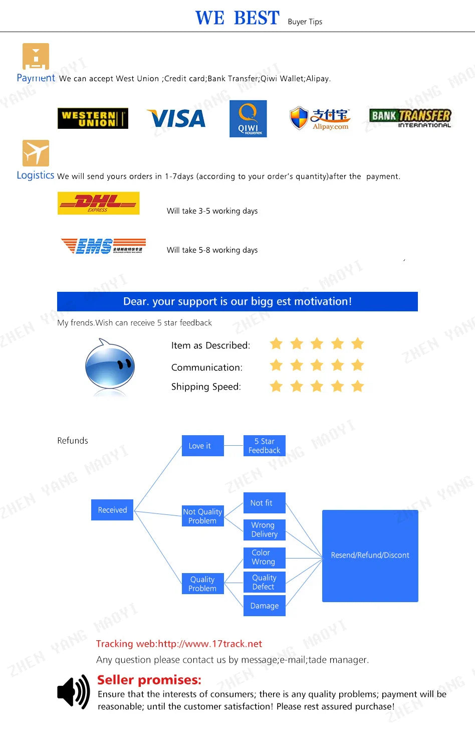 1.If you need your package sent by DHL, FEDEX, Aramex, EMS, UPS, please contact us . we will update the shipment for you.All the products is free shipping by "China regiestered Post Air Mail" or "ePacket"(just some countries such USA/UK)