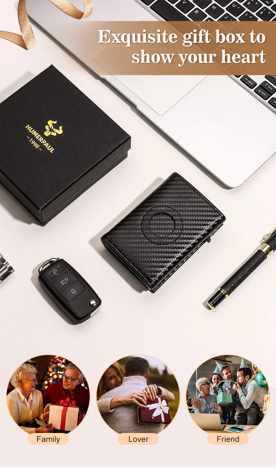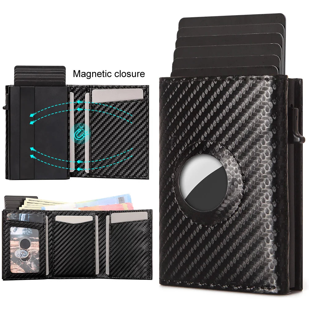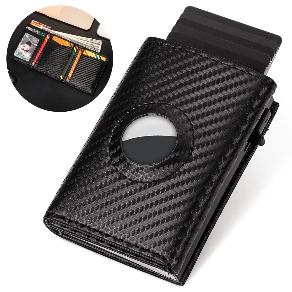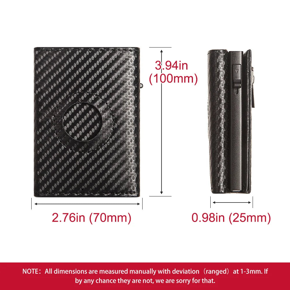 Men Smart Wallet Credit Card Holder for AirTag Carbon Fiber Aluminum Automatic Pop Out Cardholder Case with Money Clip