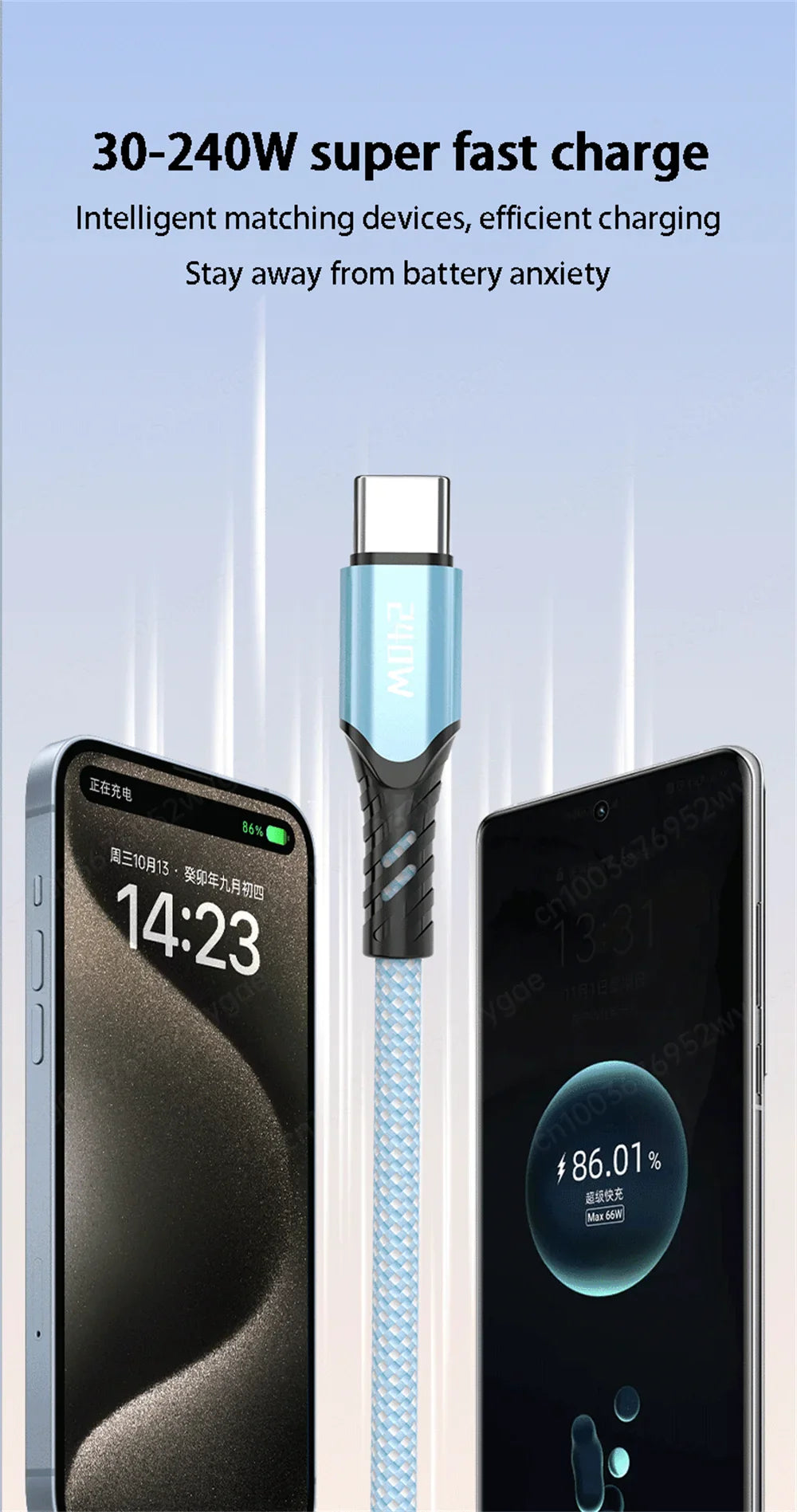 NNBILI 240W USB C Cable Power Wire QC4.0 for MacBook Samsung iPhone 15 16 USB C to C PD Cable 48V5A Fast Charging Type C Cable