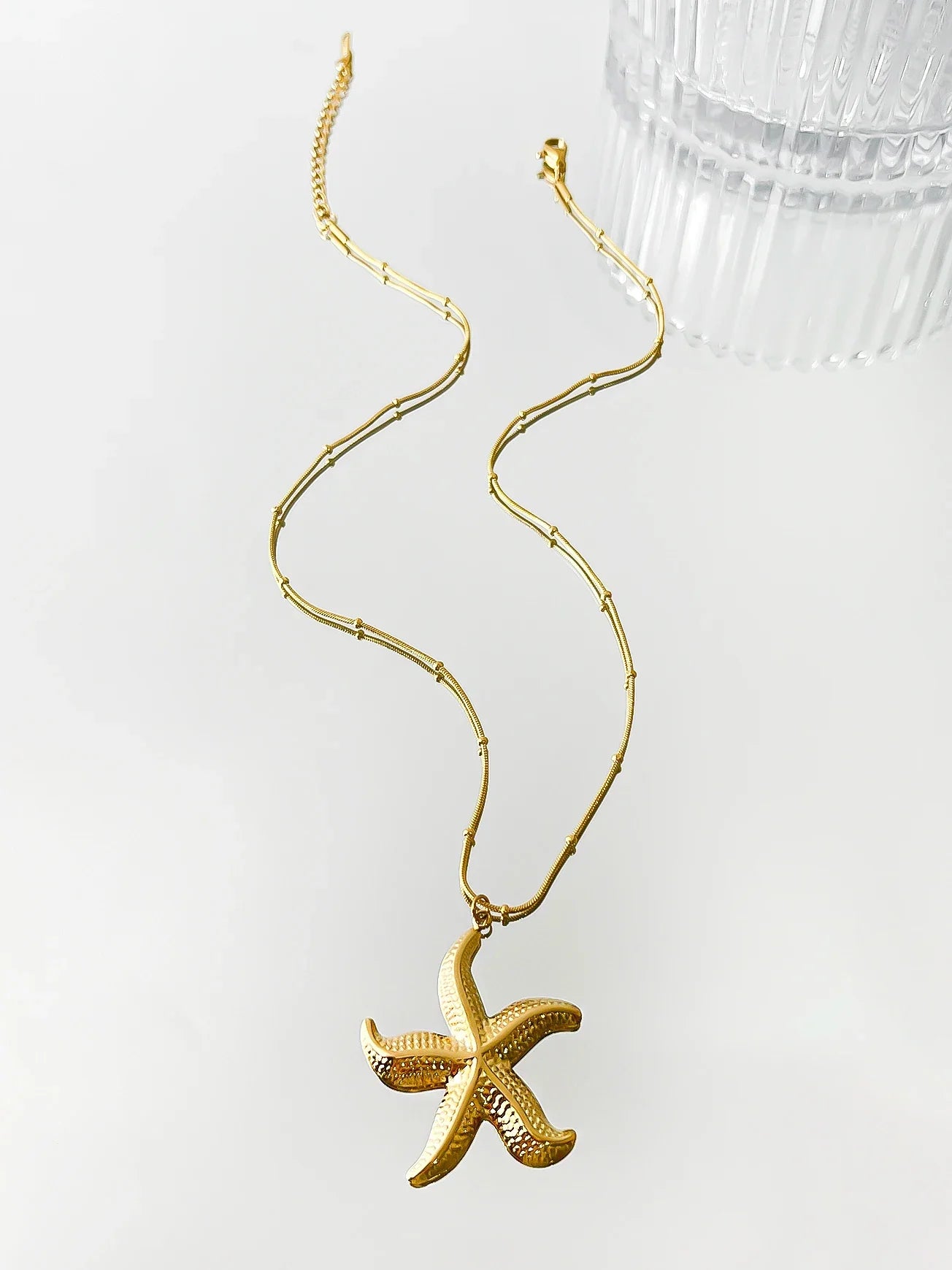 Peri'sbox Minimalist Starfish Stripe Conch Scallop Shaped Pendant Necklace for Women Waterproof Trend Jewelry Summer Beach Party