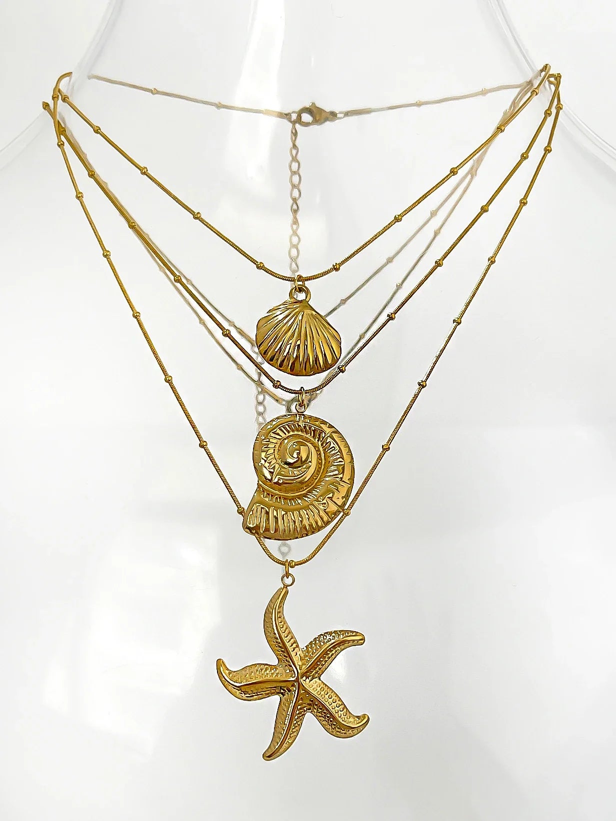 Feature: Starfish Stripe Conch Scallop Shaped Pendant Necklace