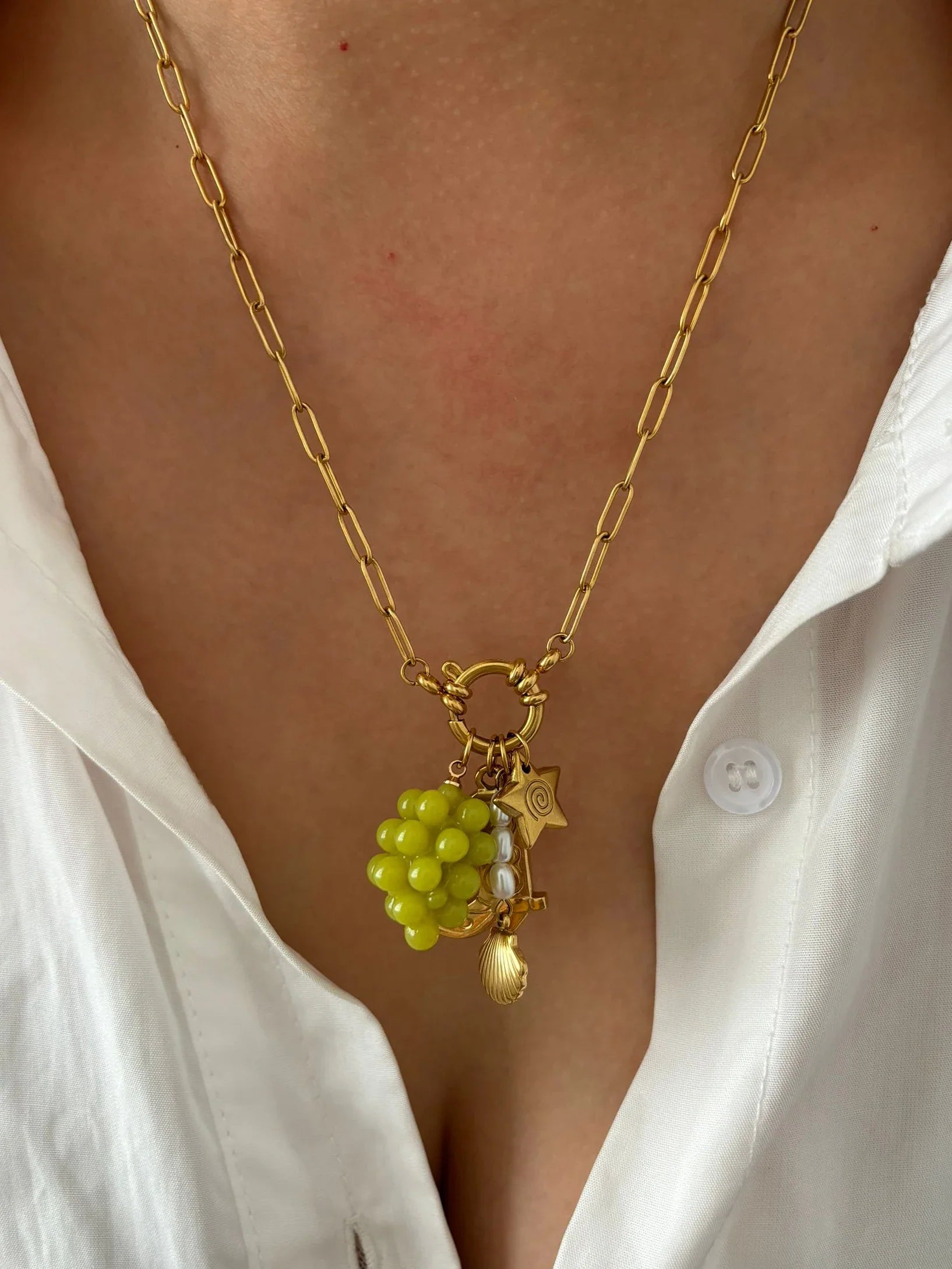 Peri'sbox Statement Trendy Imitation Pearl Grape Blueberry Shell Pendant Necklace for Women Stainless Steel Creative Accessories