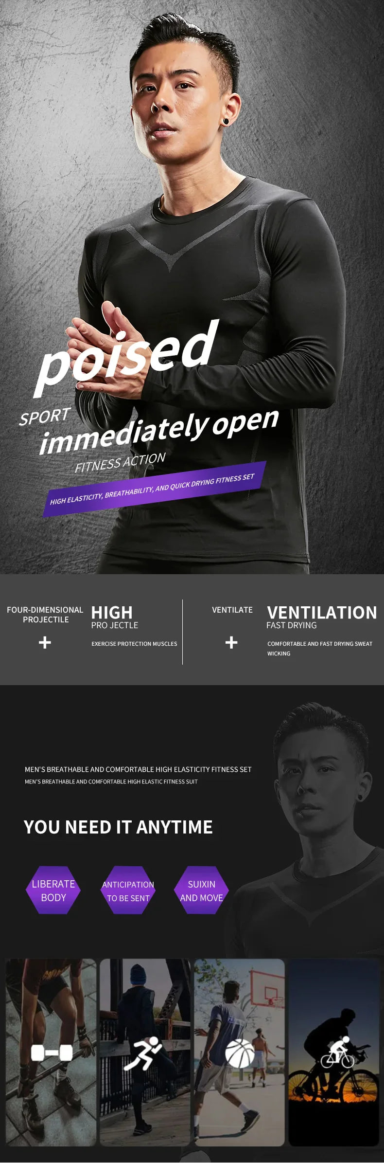 Quick Drying Tight Fitting Suit For Men'S Long Sleeved Sports Cycling Top, Running, Fitness, Football Training, Basketball Shirt