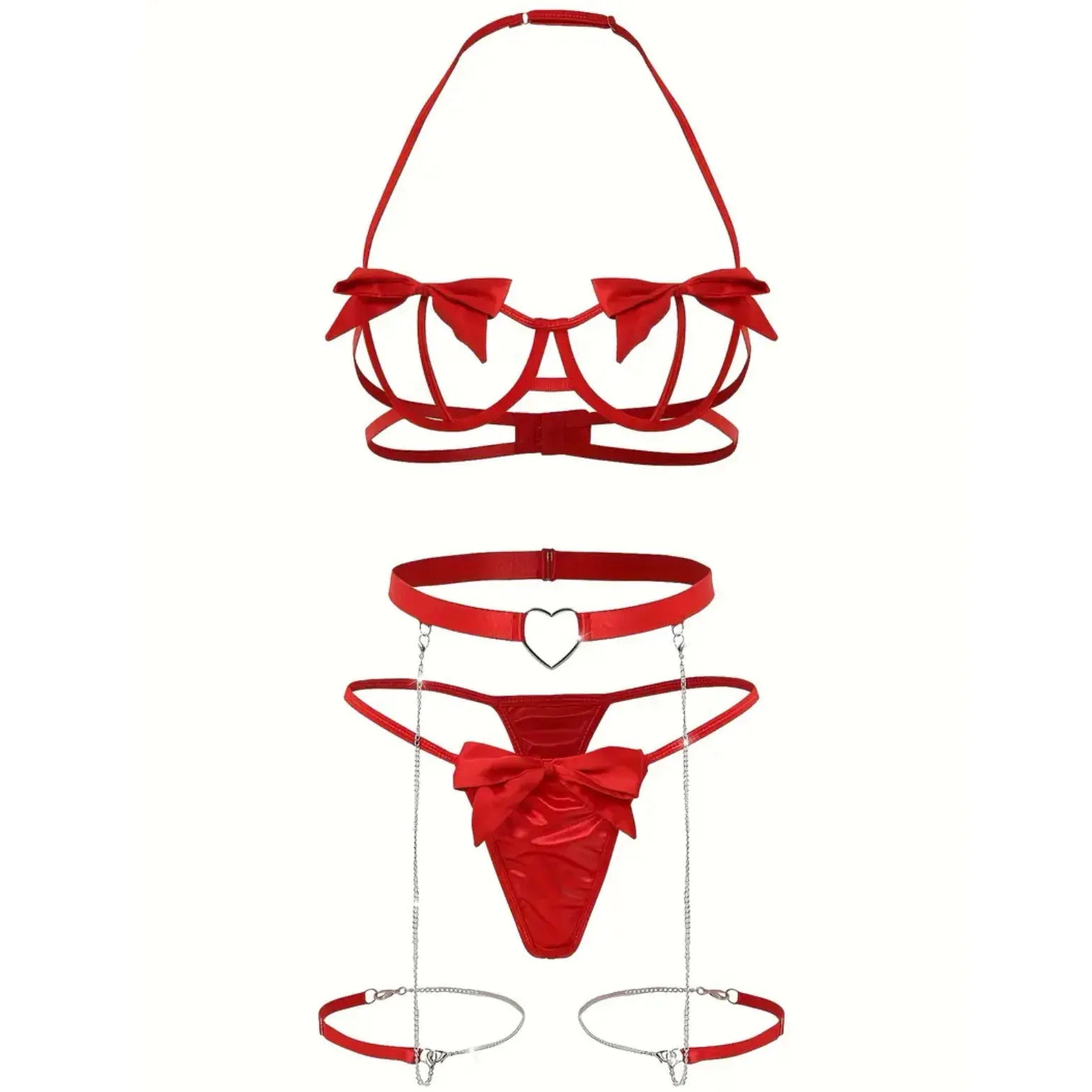 Red Floral Lace Garter Lingerie Set With Choker Women Intimates 2022 Underwire Bra And Thongs Ladies Underwear Set