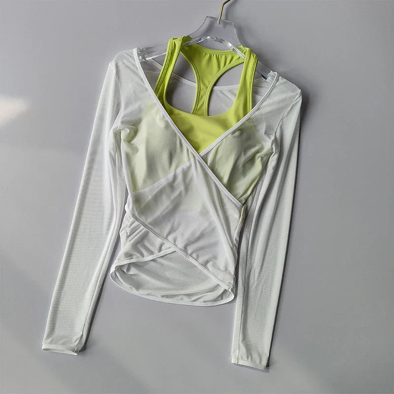 Sexy Mesh Slimming Yoga Suit for Women Gathering Together Sports Bra Fake Two Pieces of Quick Drying Training Pilates Cover Up