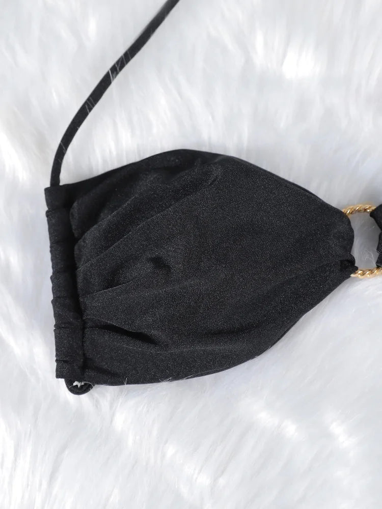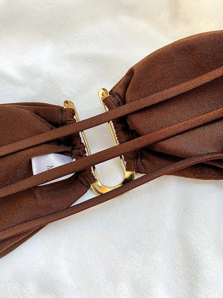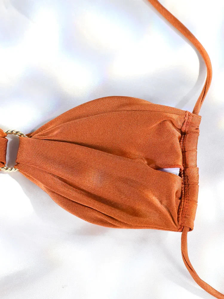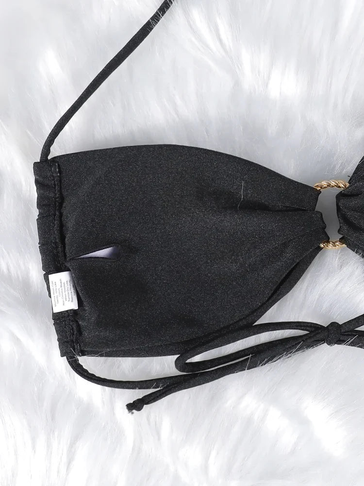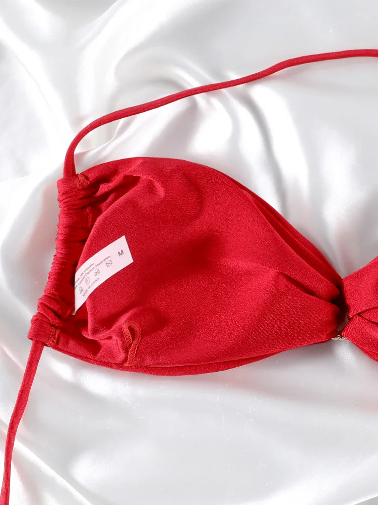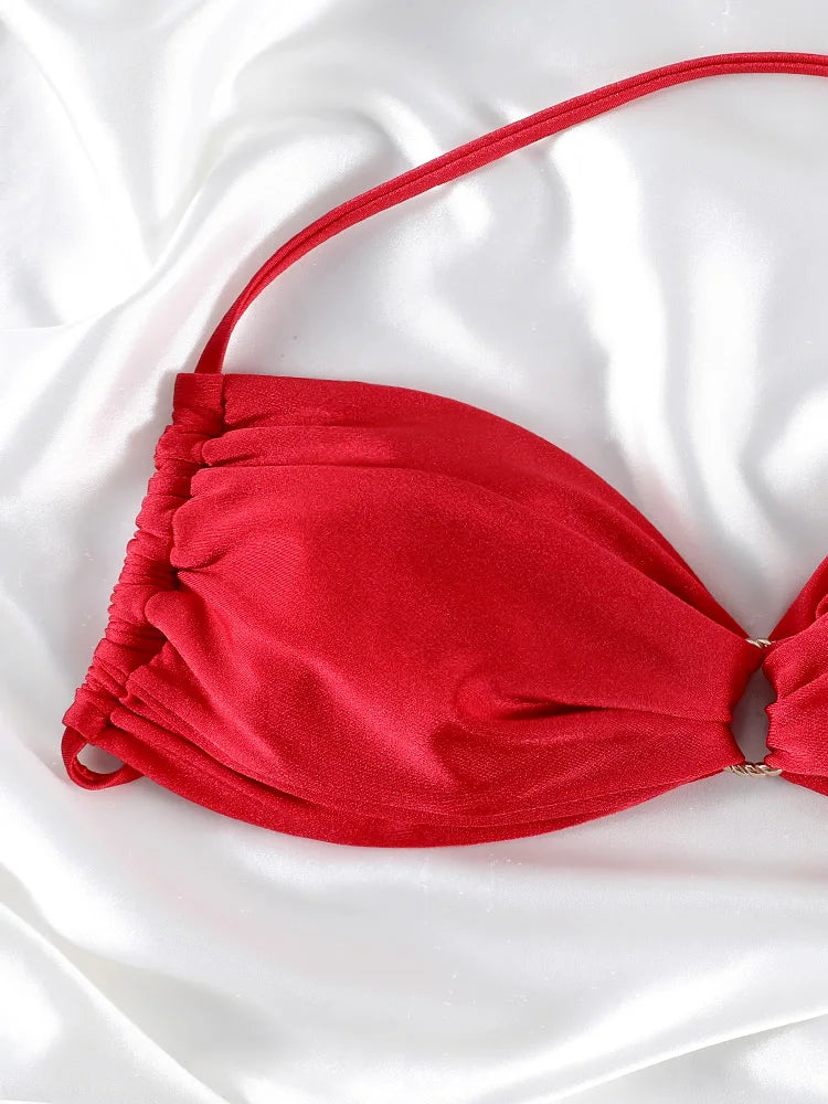 Solid Color Bikinis Push Up Swimwear Women Halter Bikini Set Shiny Swimsuit Push Up Bathing Suits Bandage Beachwear Thong
