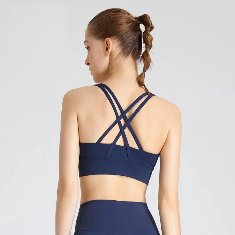 Solid Color Fitness Women Sport Bra Gym Yoga bra Athletic Cross Tight Top Workout Train With Chest Pad High quality shockproof
