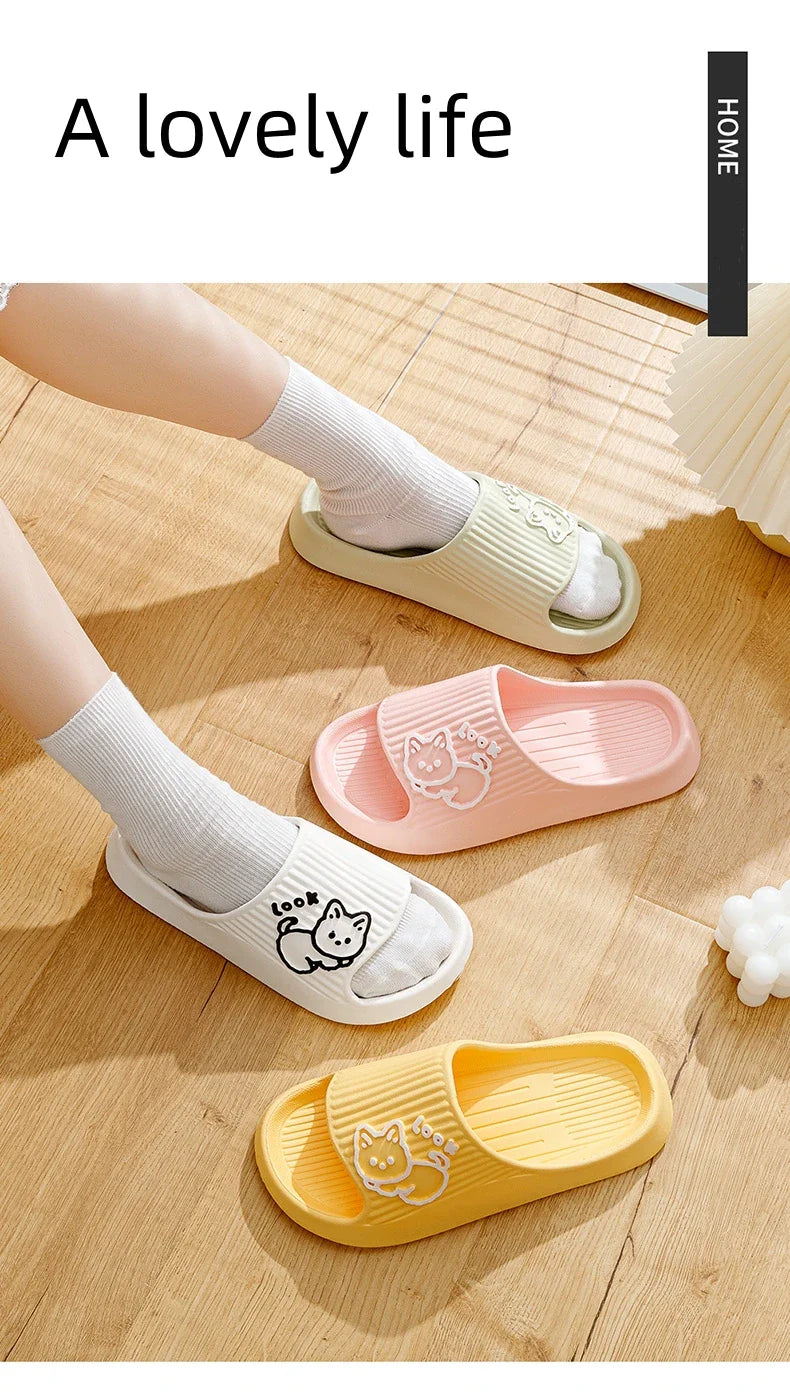 Summer Women's Slippers Fashion Indoor Soft Sole Durable And Wear-resistant Cute Cartoon Cat Bathroom Home Shoes Couple