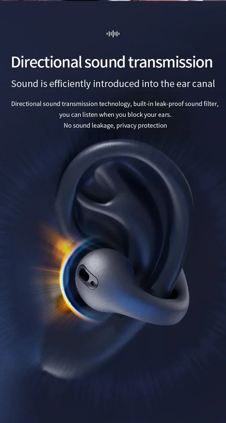 T75 Sport Bone-Conduction Bluetooth 5.3 Earphones HiFi Sound Wireless Headphones Earclip Waterproof Open Ear Headset Earring