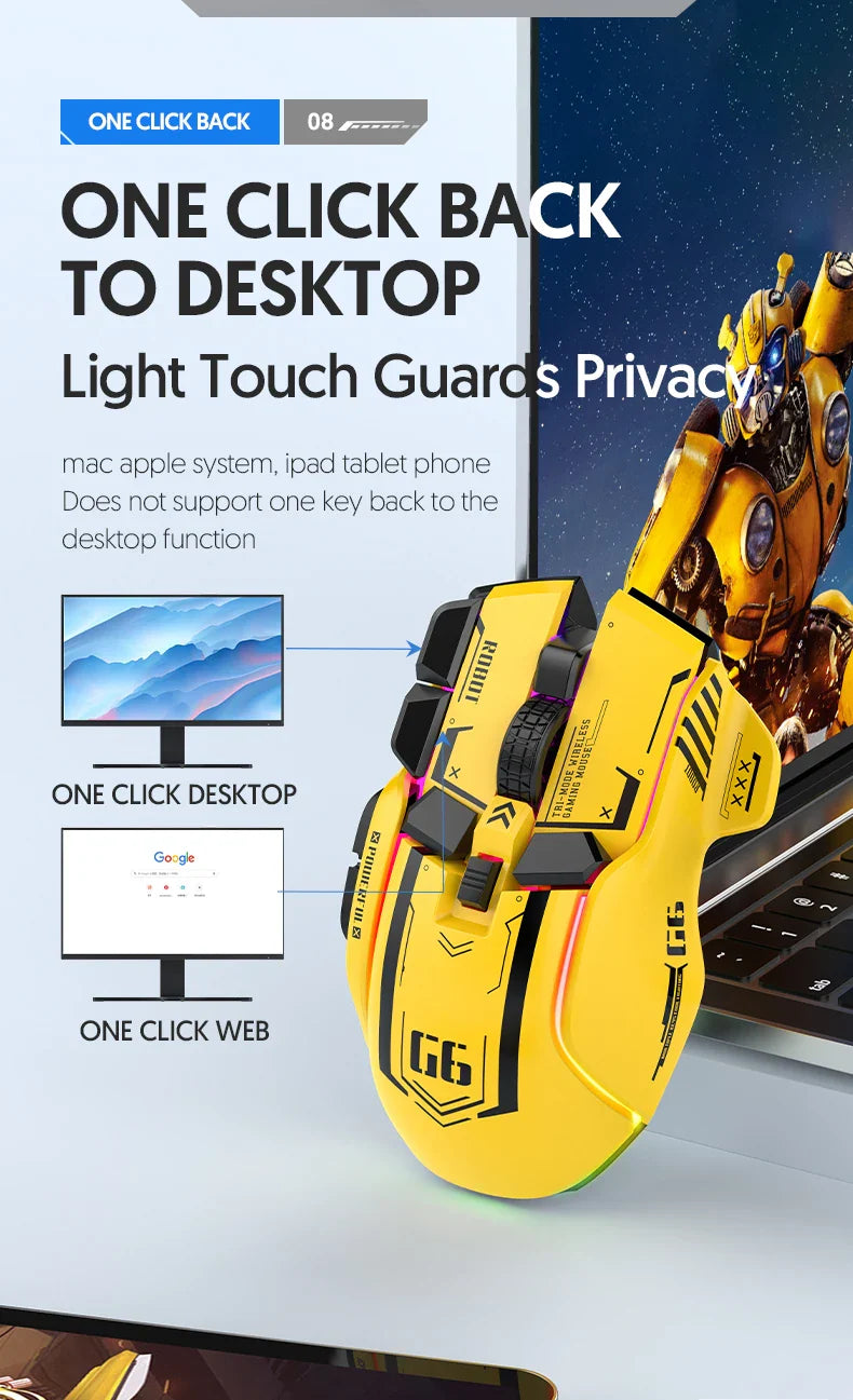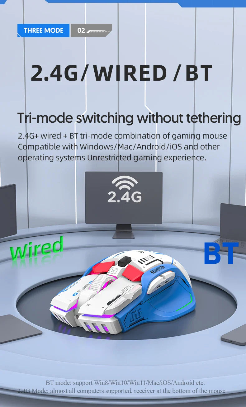 Tri-mode 2.4G USB Bluetooth Wireless Gamimg Mouse 12 keys RGB Game Wired Meche Mice for Windows IOS Home Office Laptop PC Gamer