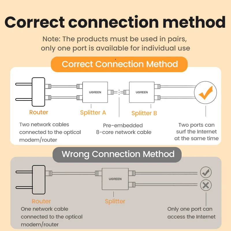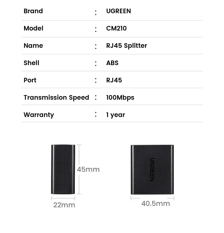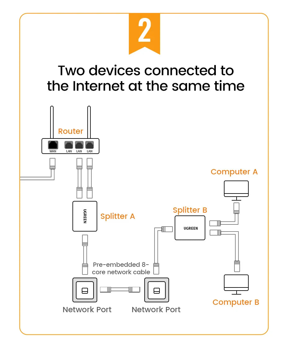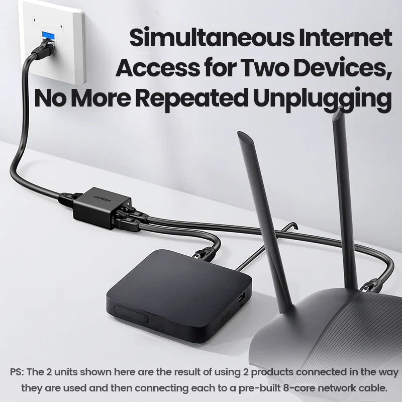 UGREEN RJ45 Splitter 1 to 2 Ethernet Adapter Internet Network Cable Extender RJ45 Connector Coupler for PC Laptop TV Box Router