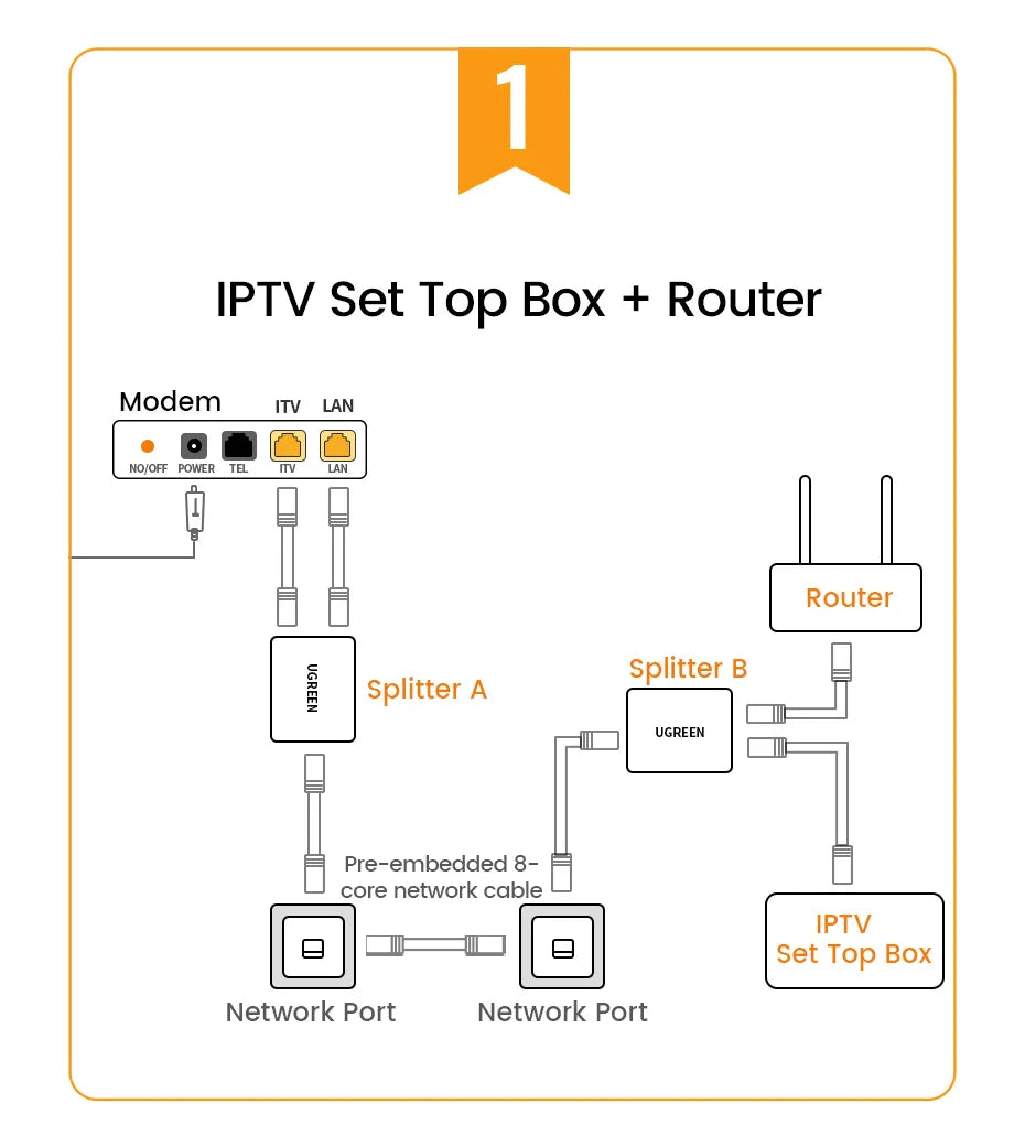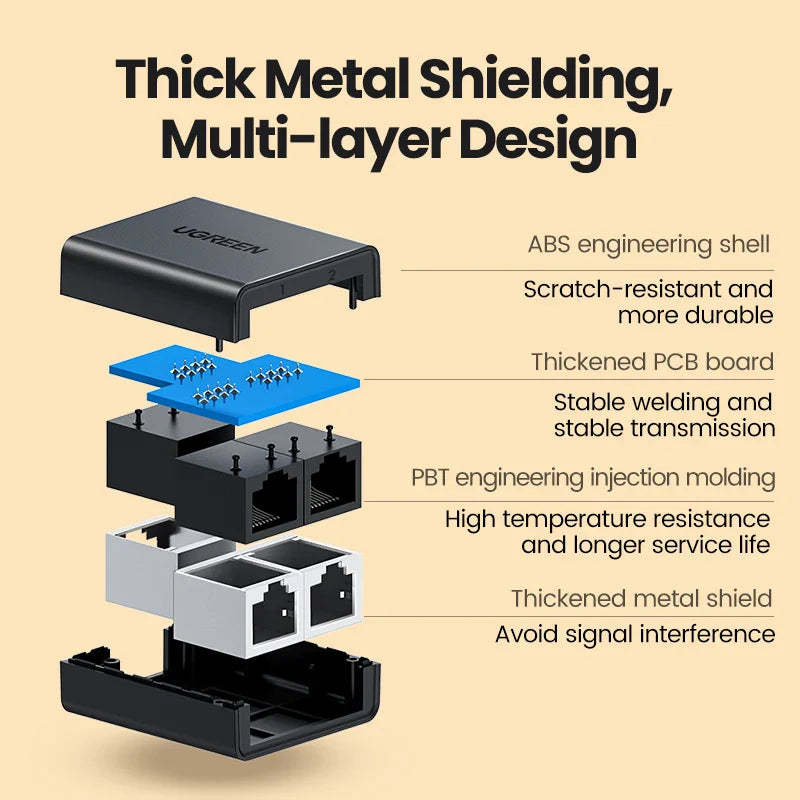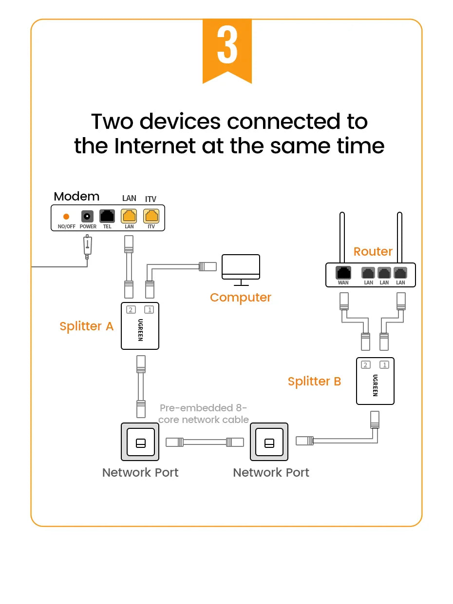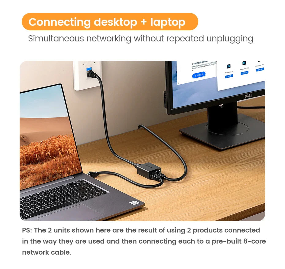 UGREEN RJ45 Splitter 1 to 2 Ethernet Adapter Internet Network Cable Extender RJ45 Connector Coupler for PC Laptop TV Box Router