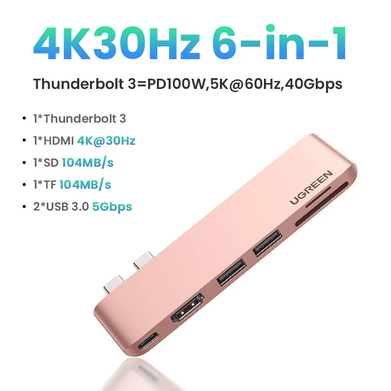 UGREEN USB C HUB 6-in-2 Type-C to Thunderbolt 3 4K HDMI USB3.0 SD&TF Adapter for MacBook Pro Air Docking Station USB-C Splitter