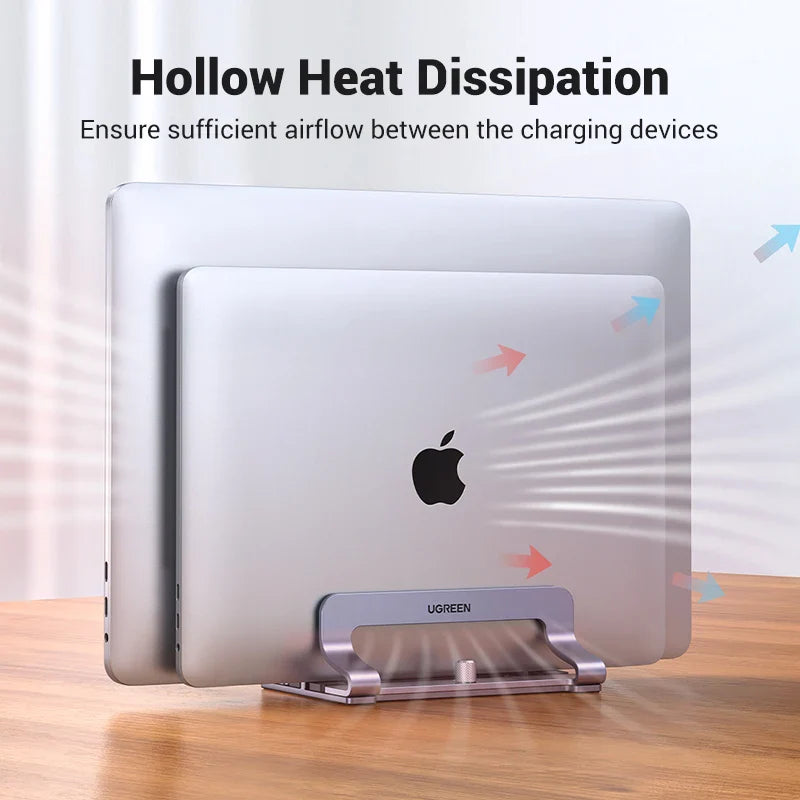 UGREEN vertical laptop stand features dual slot to cradle two laptops simultaneously in an upright position to optimize and organize your desktop space.