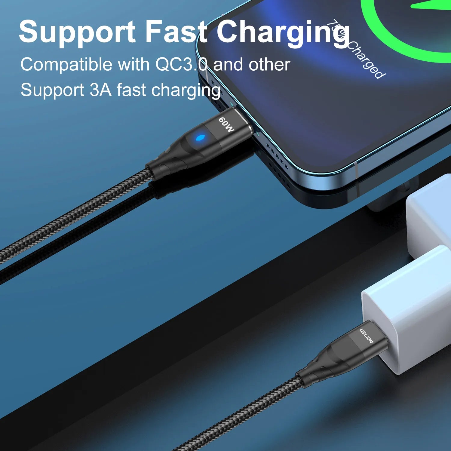 USLION PD 60W Magnetic Fast Charger Cable for iPhone 14 13 Pro Max Xiaomi 12 POCO USB C To Type C Data Charging Wire for Macbook