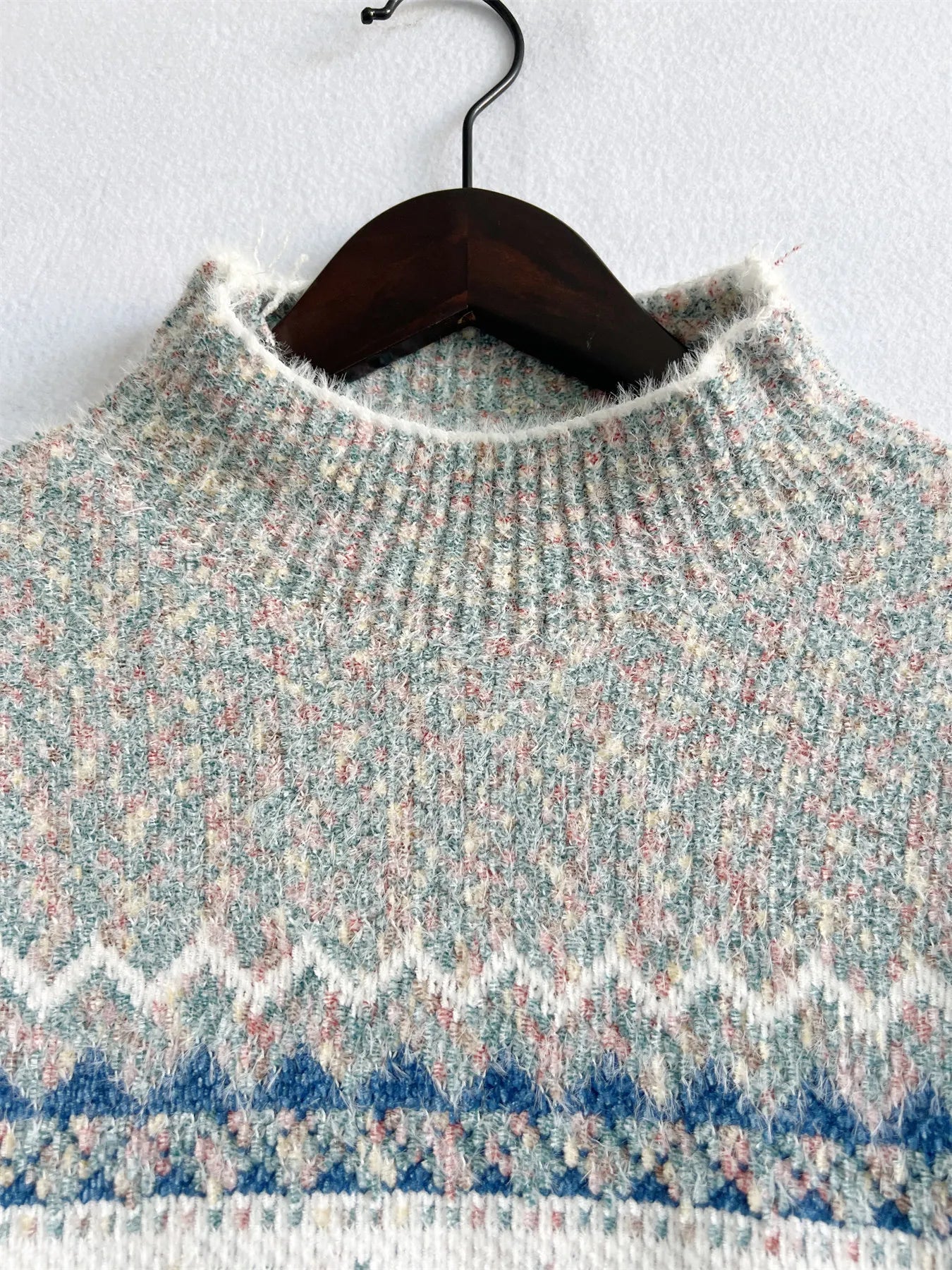Winter Clothes Women 2023 New Year Sweater Snowflake Vintage Loose Jumper Red Long Sleeve Knitted Pullover Holiday Tops