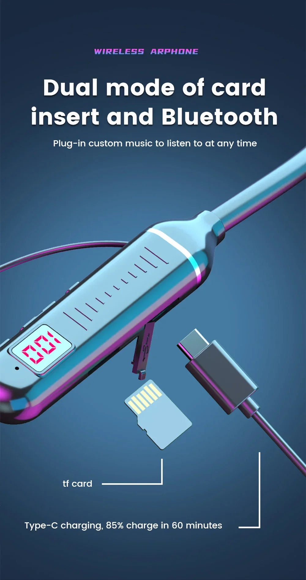 Wireless Earphones 5.3 Neckband Headphones Gaming LED Display Stereo Sports Headset Halter Waterproof Magnetic Earbuds