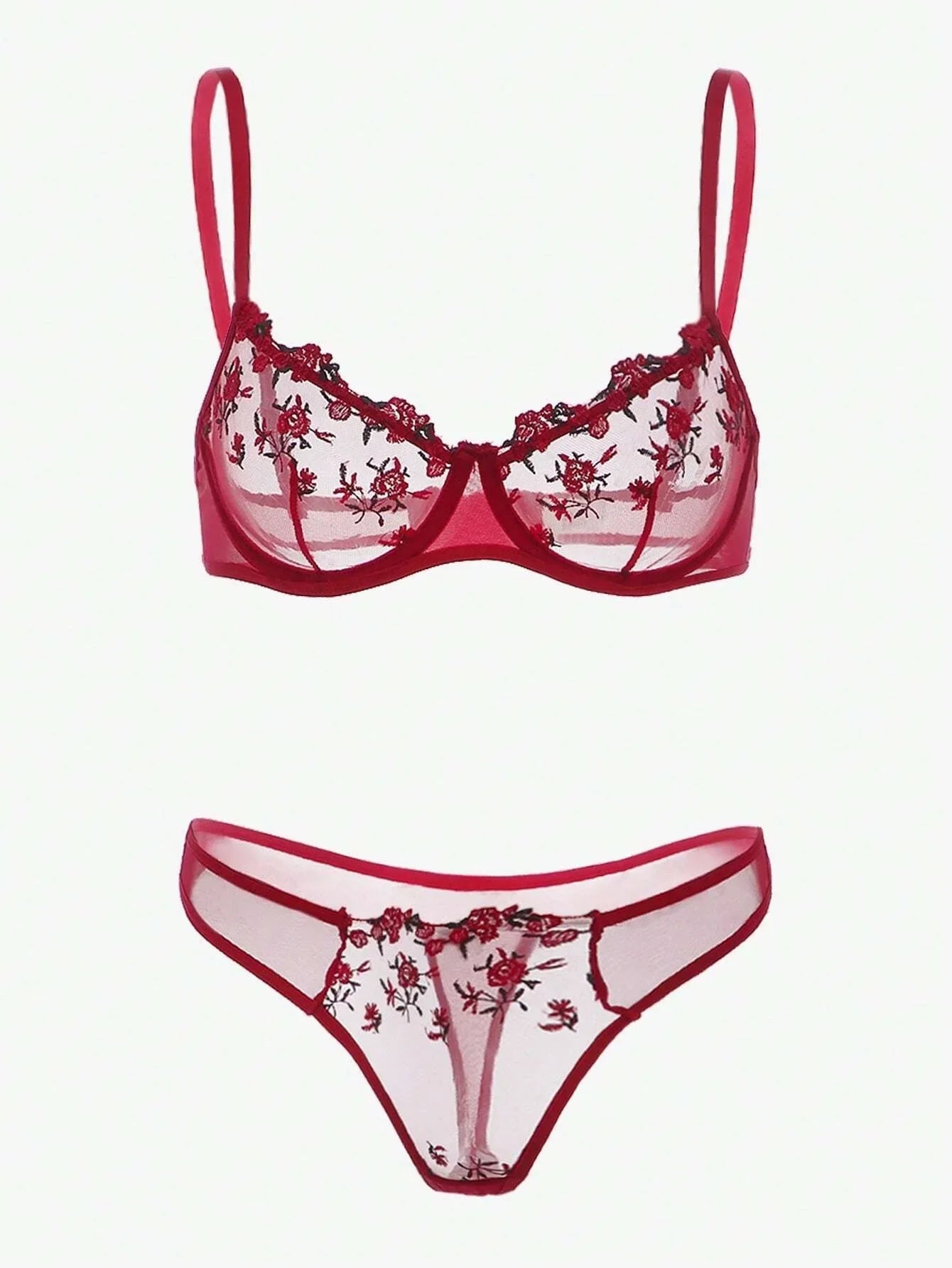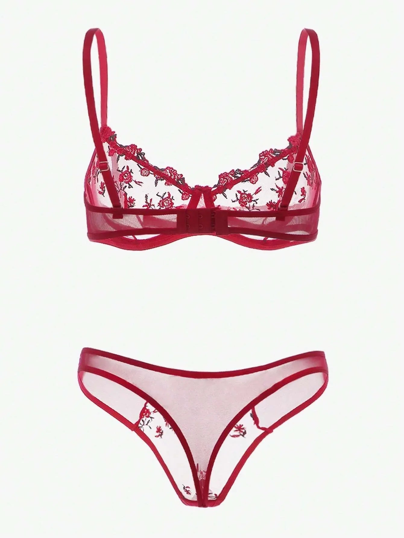 Women Floral Embroidory Underwear Set Sexy Lace Erotic Lingerie Female Bra And Brief Transparent Sensual Push Up Panty Patchwork