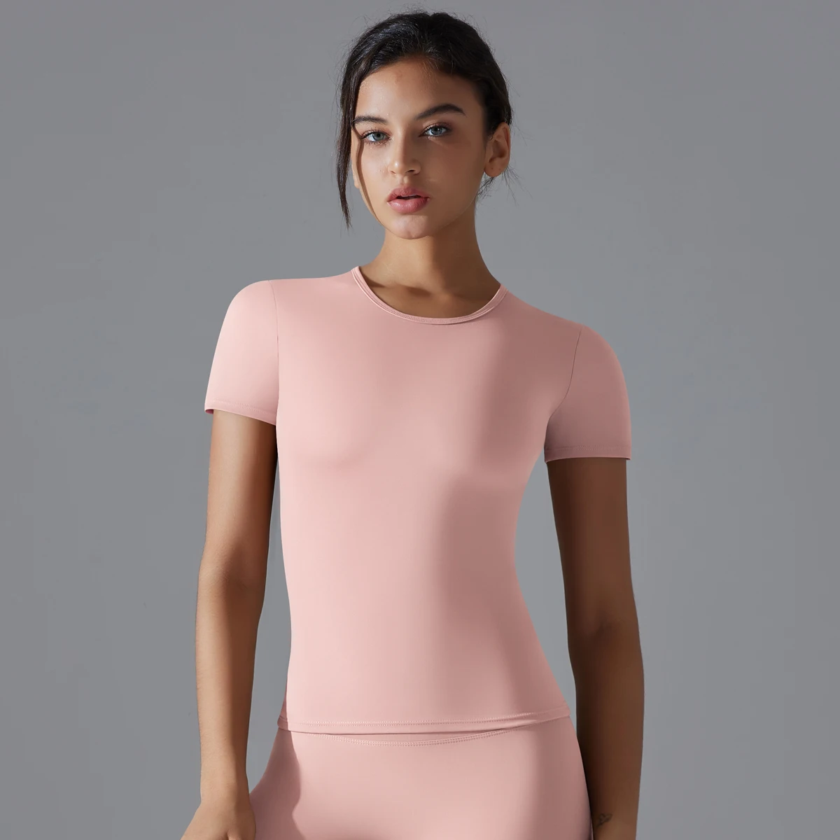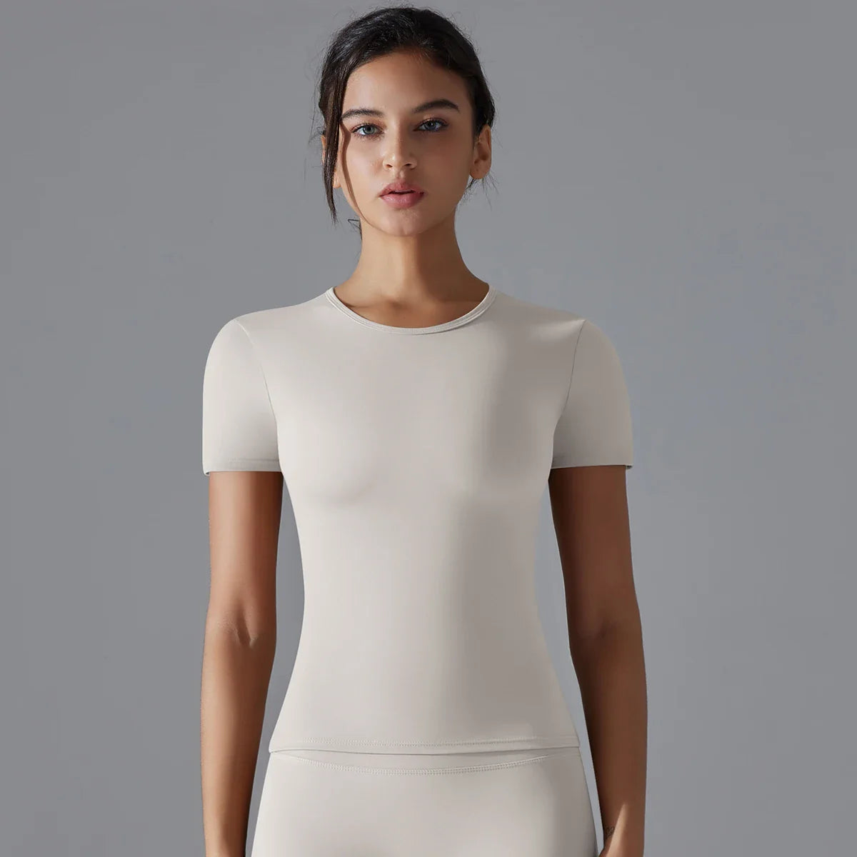 Women Running Sports T Shirt Summer Short Sleeve Round Neck Breathable Stretchy GYM Yoga Slim Fitness Active Top Tee