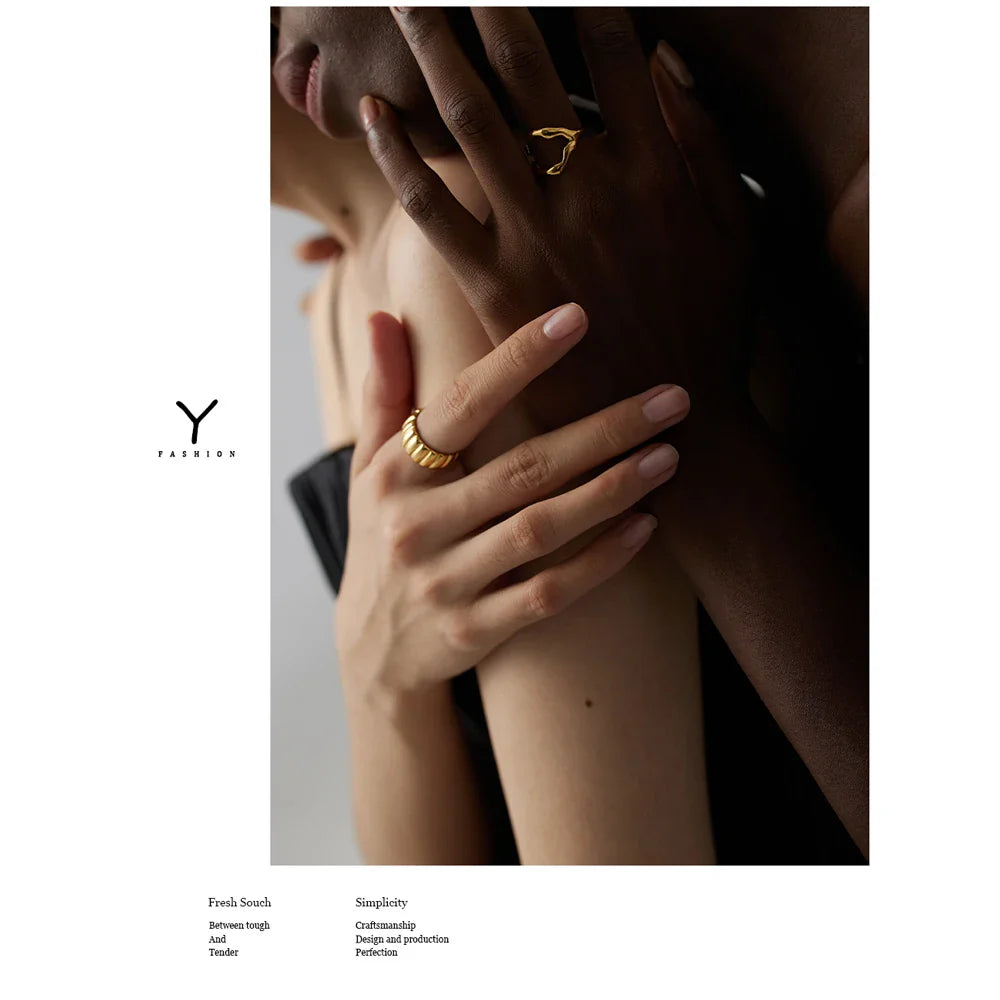 Yhpup 316L Stainless Steel Ring New Design Metalic 18 K PVD Plated Jewelry Trendy Opening Ring бижутерия для женщин Gift