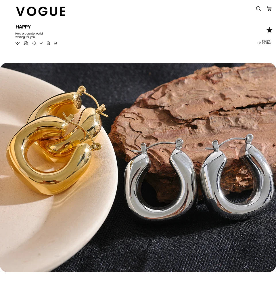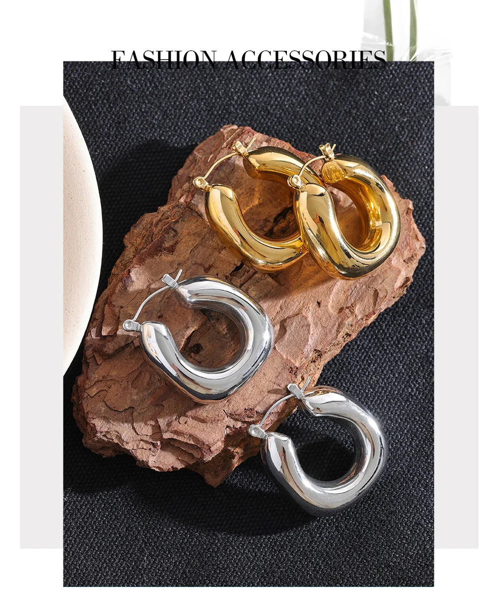 Yhpup High Quality Stainless Steel Round Geometric Chunky Hoops Earrings for Women Charm Metal Simple Fashion Jewelry Waterproof