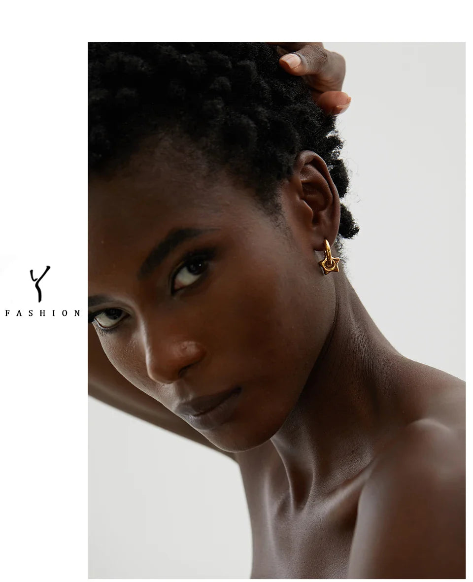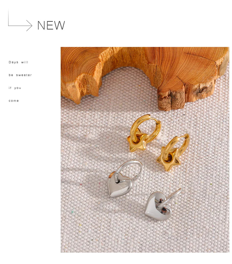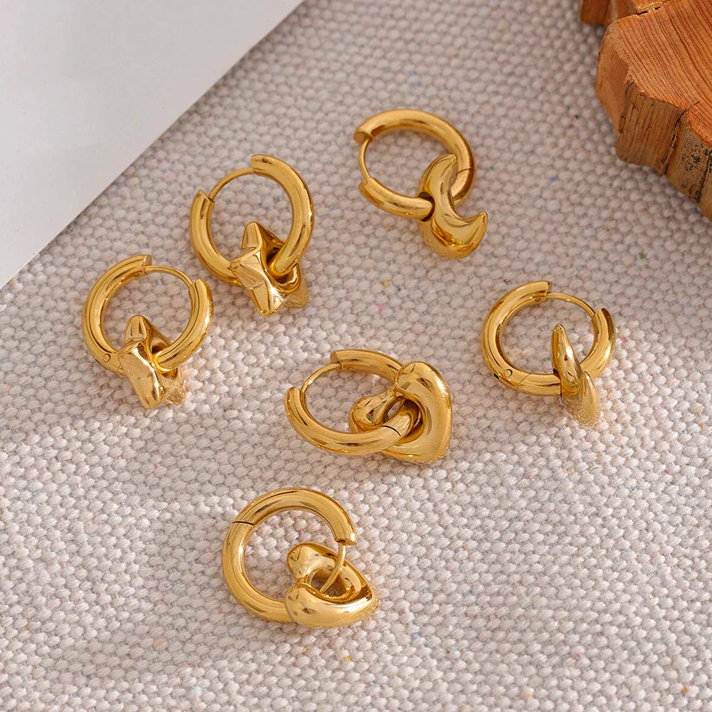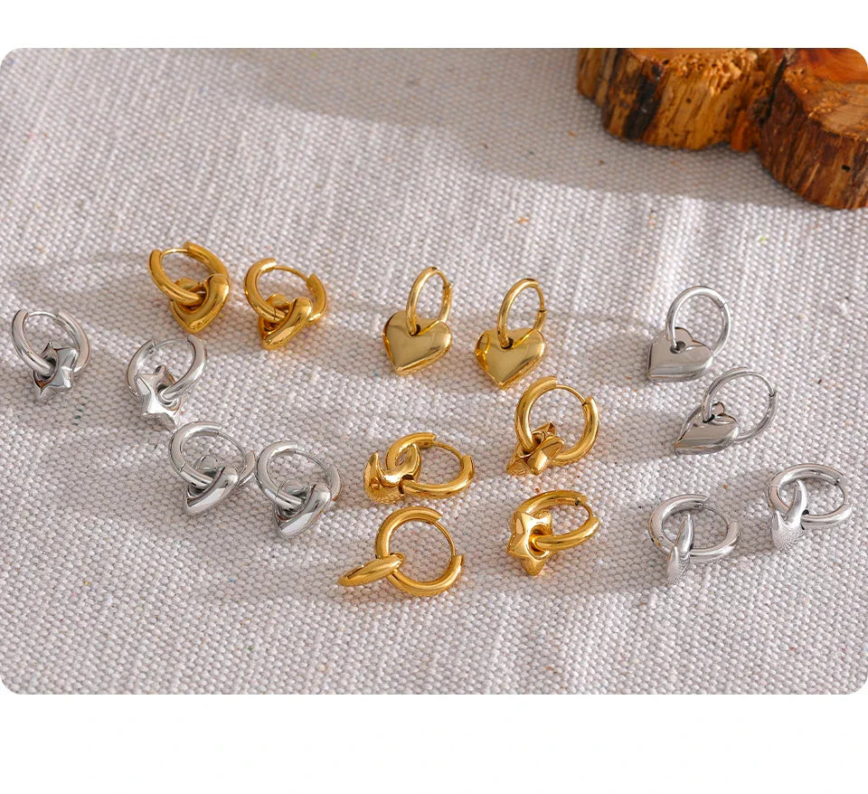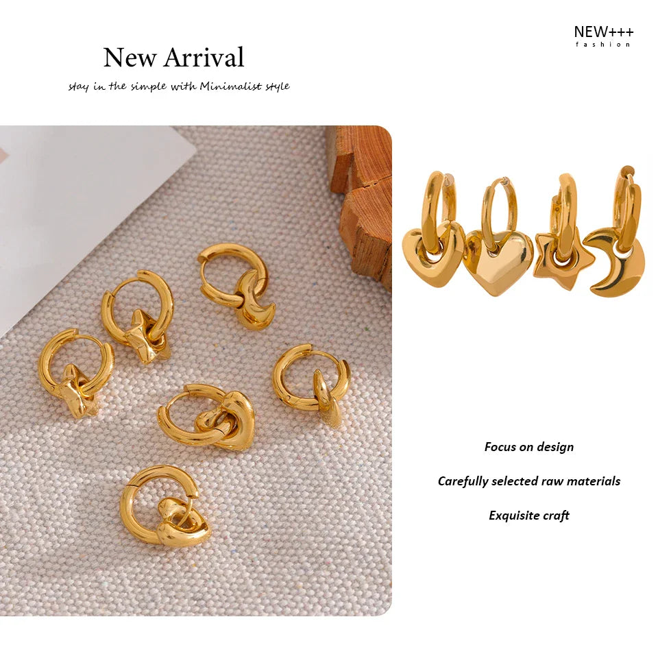 Yhpup Star Moon Heart Pendant Drop Hoop Huggie Earrings 18k Gold Plated Trendy Waterproof Stainless Steel Fashion Charm Jewelry