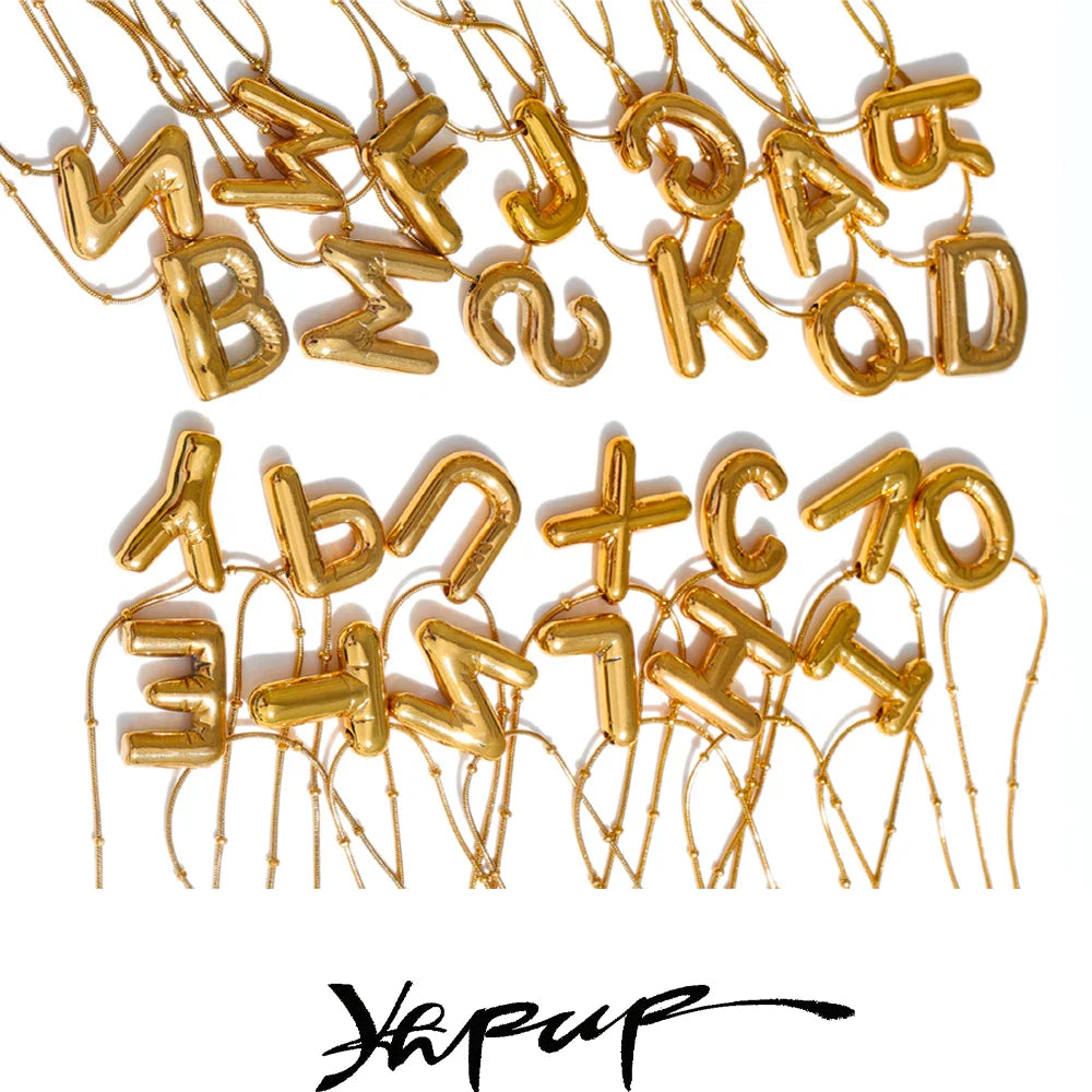 Yhpup Waterproof 26 English Letter Initial Name Pendant Necklace Stainless Steel 18K PVD Plated A to Z Charm Jewelry Wholesale